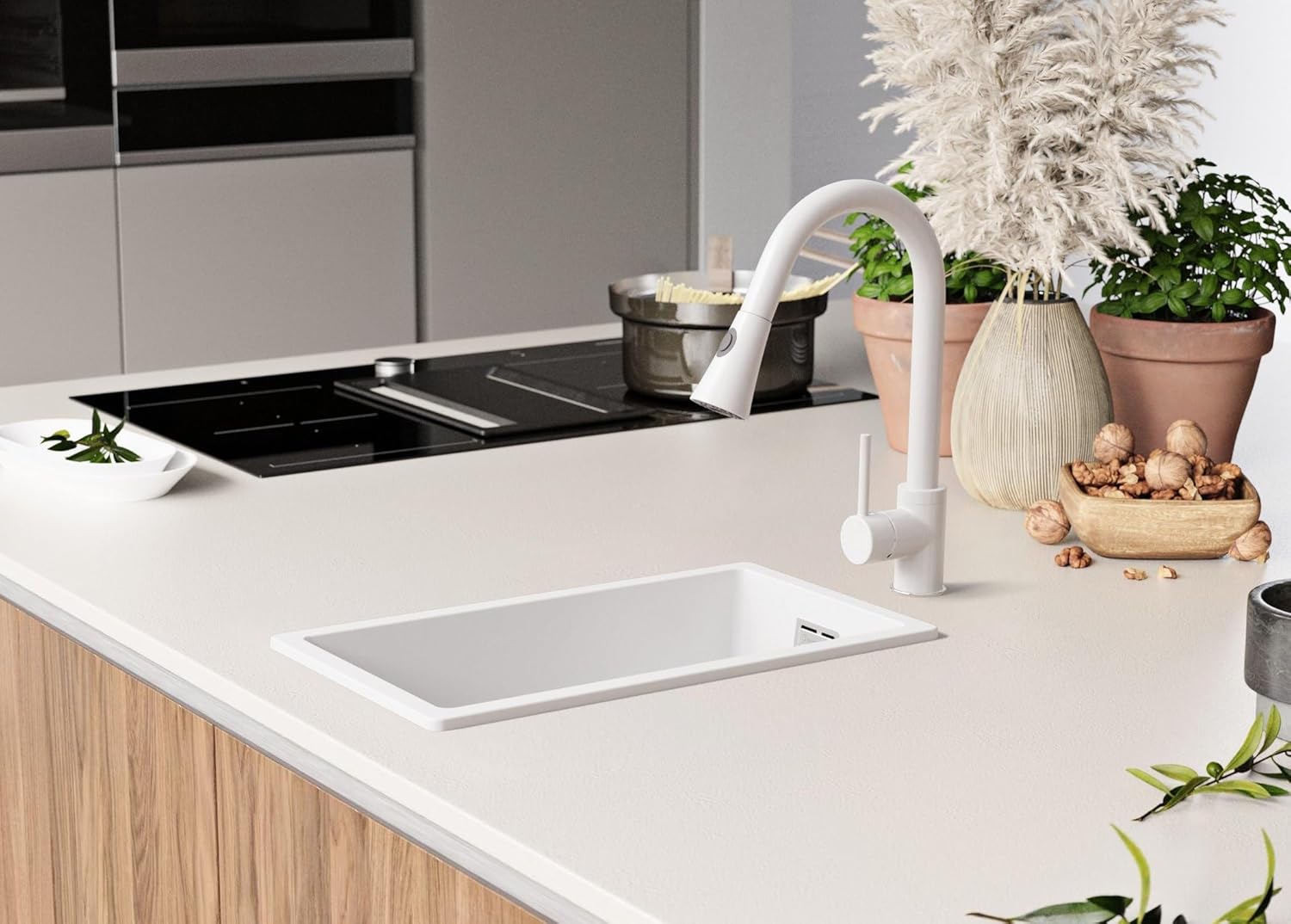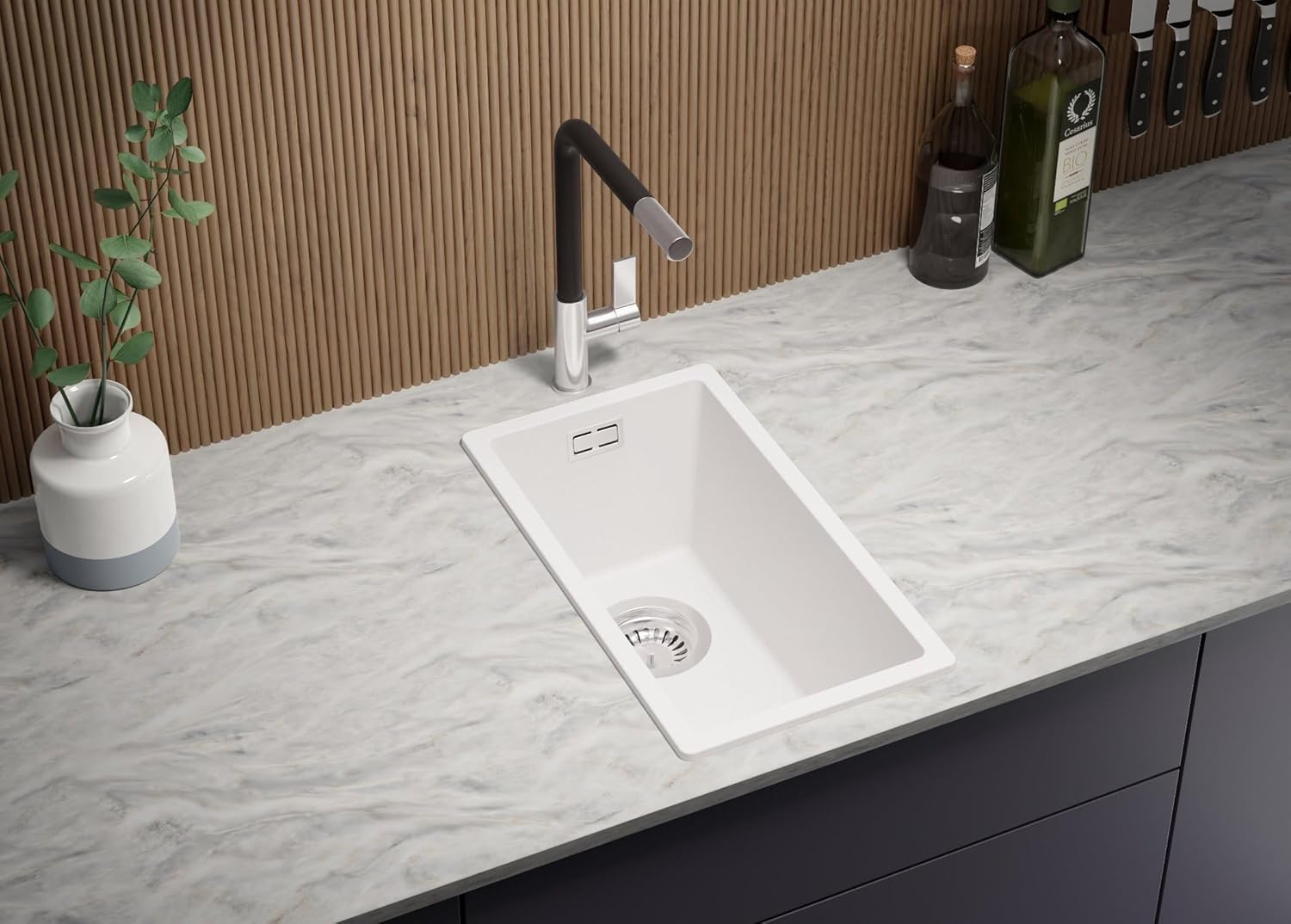 - ⚙️ GESTALTERISCHE FLEXIBILITÄT – Die Installation von Küchenarmatur und Zubehör erfolgt durch Bohrungen in der Arbeitsplatte. So können Sie den Seifenspender oder den Siphon-Drehknopf nach Ihren Bedürfnissen auf der bevorzugten Seite