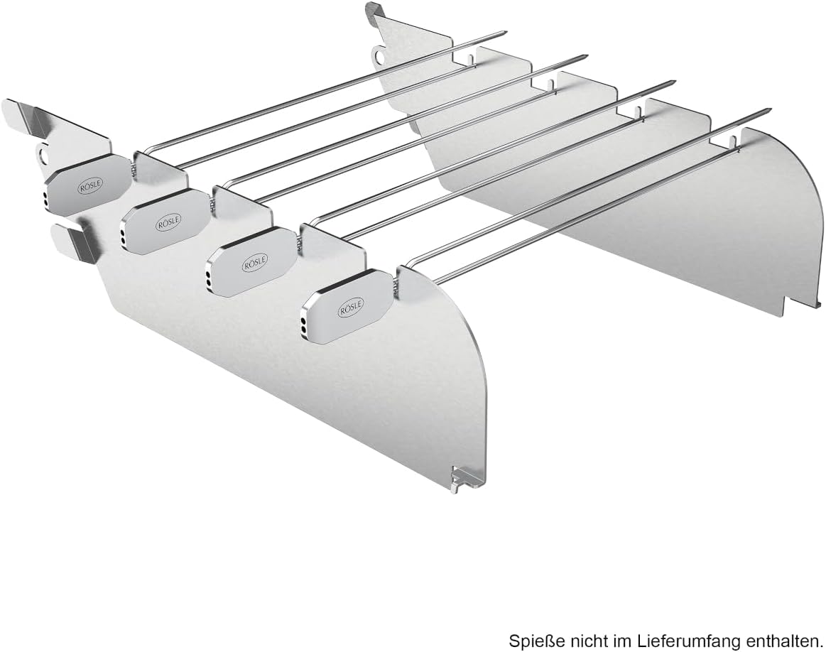 - Die Edelstahlflächen des Windschutzes sichern das Grillgut auf der RÖSLE Primezone vor Windstössen - mit einer Auflagefläche für bis zu 4 Grillspiesse können Fleisch- und Gemüsespiesse im Handumdrehen auf der Primezone gebraten werden