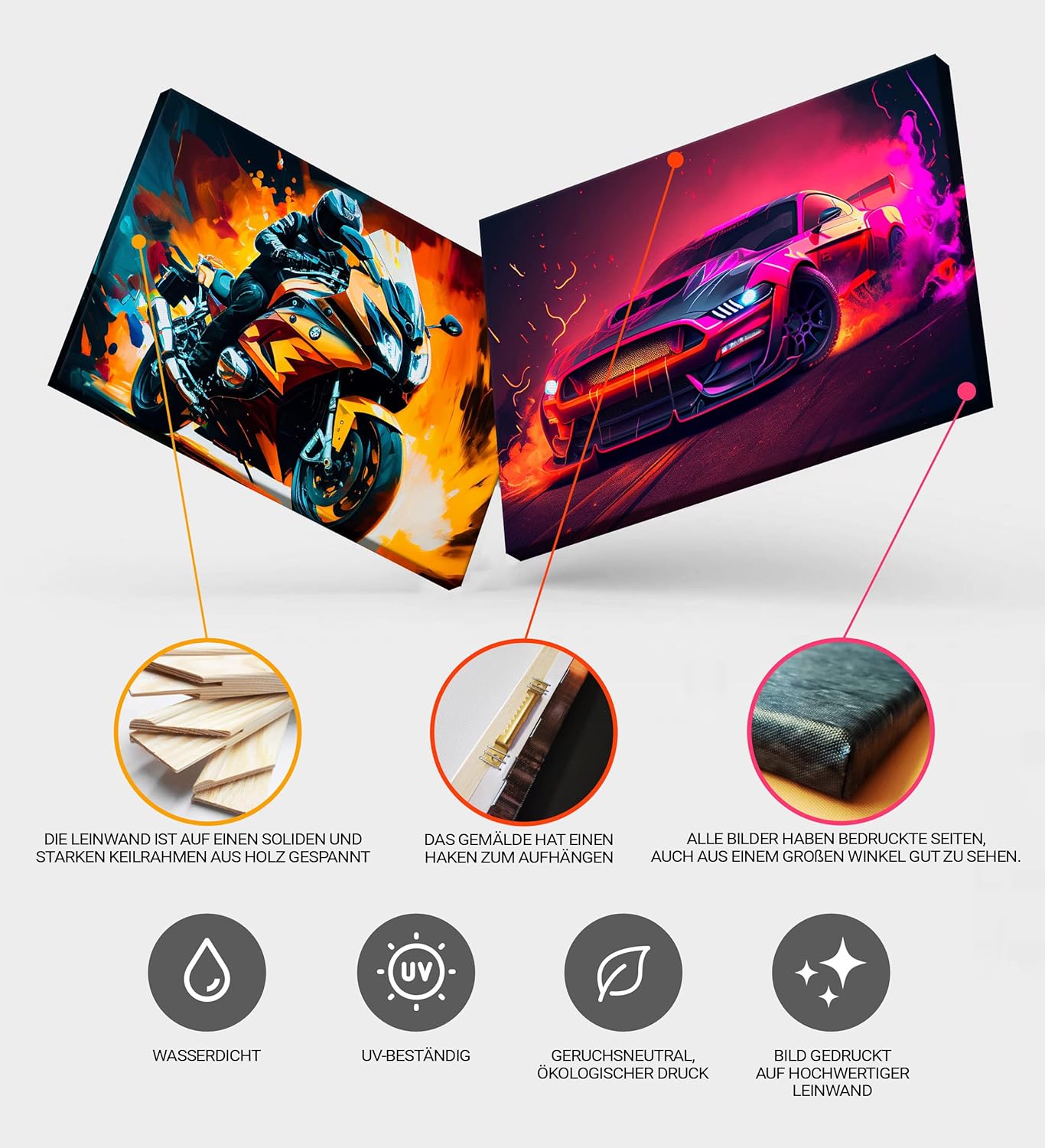 • Geruchsneutral, ökologischer Druck, bild gedruckt auf hochwertiger Leinwand, UV-beständig, wasserdicht, bereit zum Aufhängen.
