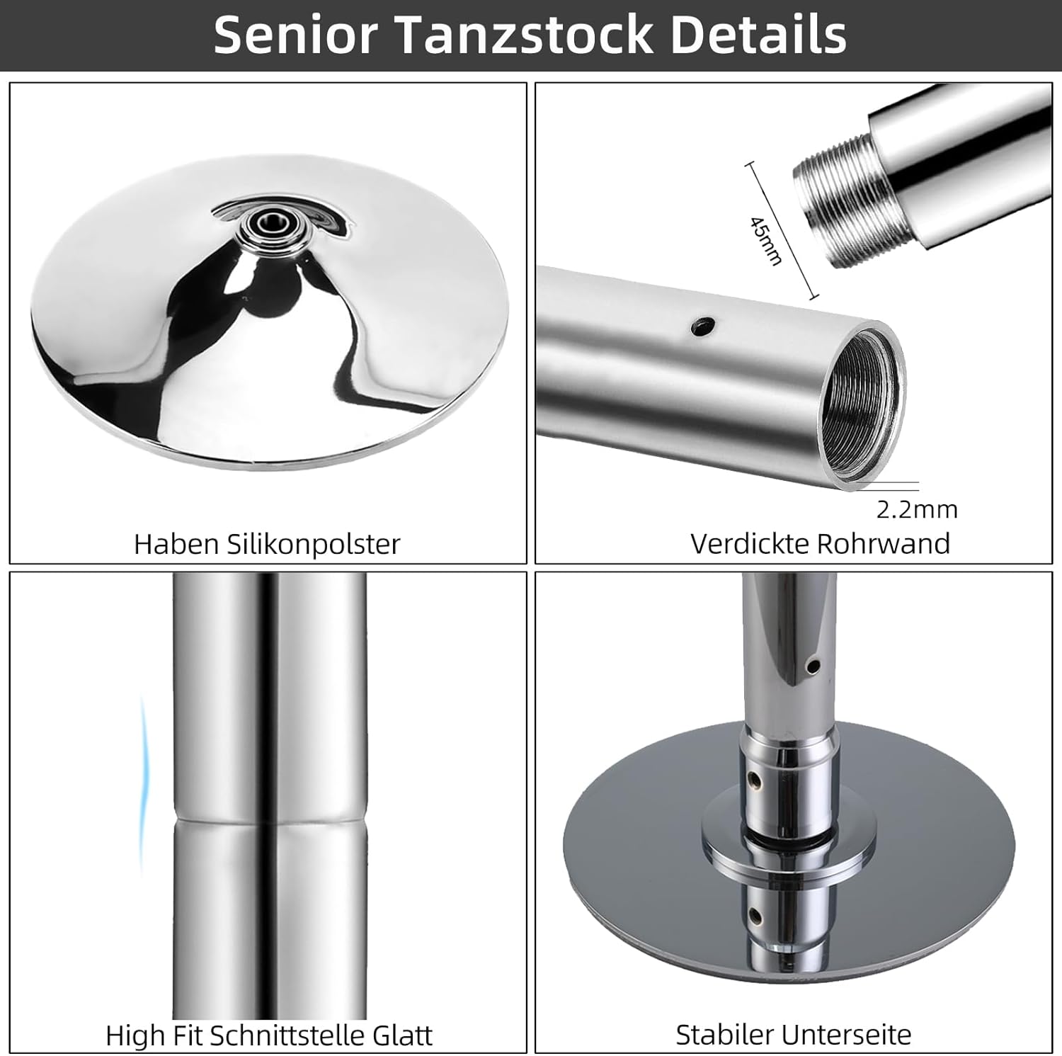 - Hochwertige Stahlrohr-Tanzstange, starke und langlebige Stahlstruktur, korrosions- und rostfreie Oberfläche mit Chrom-Material; Max. Maximale Tragkraft: 200 kg.