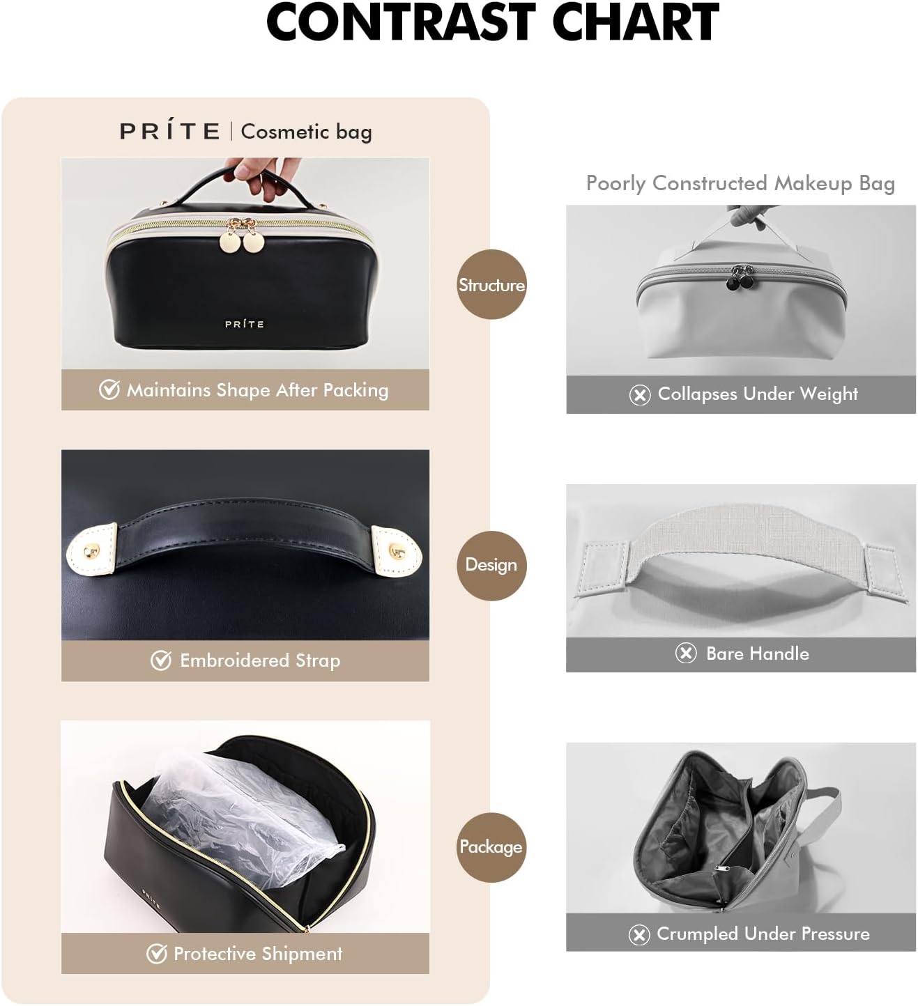 Prite Grosse Kapazität Kosmetiktasche Tragbare Reise Make Up Tasche wasserdichte PU-Leder Schminktas