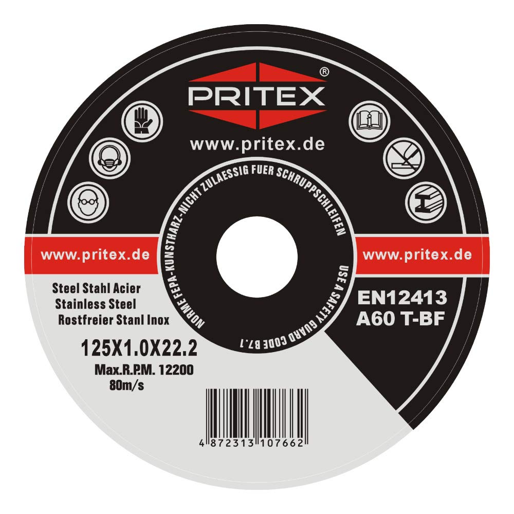 - HERVORRAGENDE SCHNITTLEISTUNG: Mit den PRITEX 125 x 1.0 mm Trennscheiben können Metalle wie Edelstahl, Blech, Stahl, Eisen oder andere dünnwandige Profile im Handumdrehen bearbeitet werden