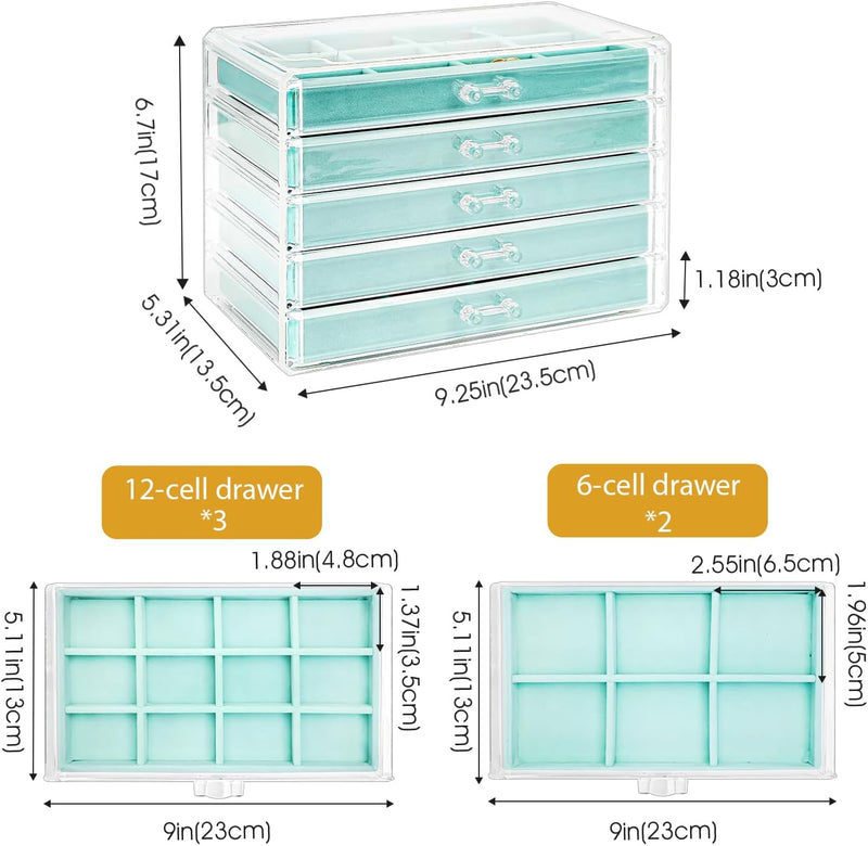 • ✅ 5 herausnehmbare Fächer aus Samt - 5 Schubladen lassen sich mit leicht zu greifenden Griffen herausziehen. Die Samtfächer auf jeder Ebene können von den Schubladen abgetrennt und zum Organisieren anderer grösserer Gegenstände verwendet werden