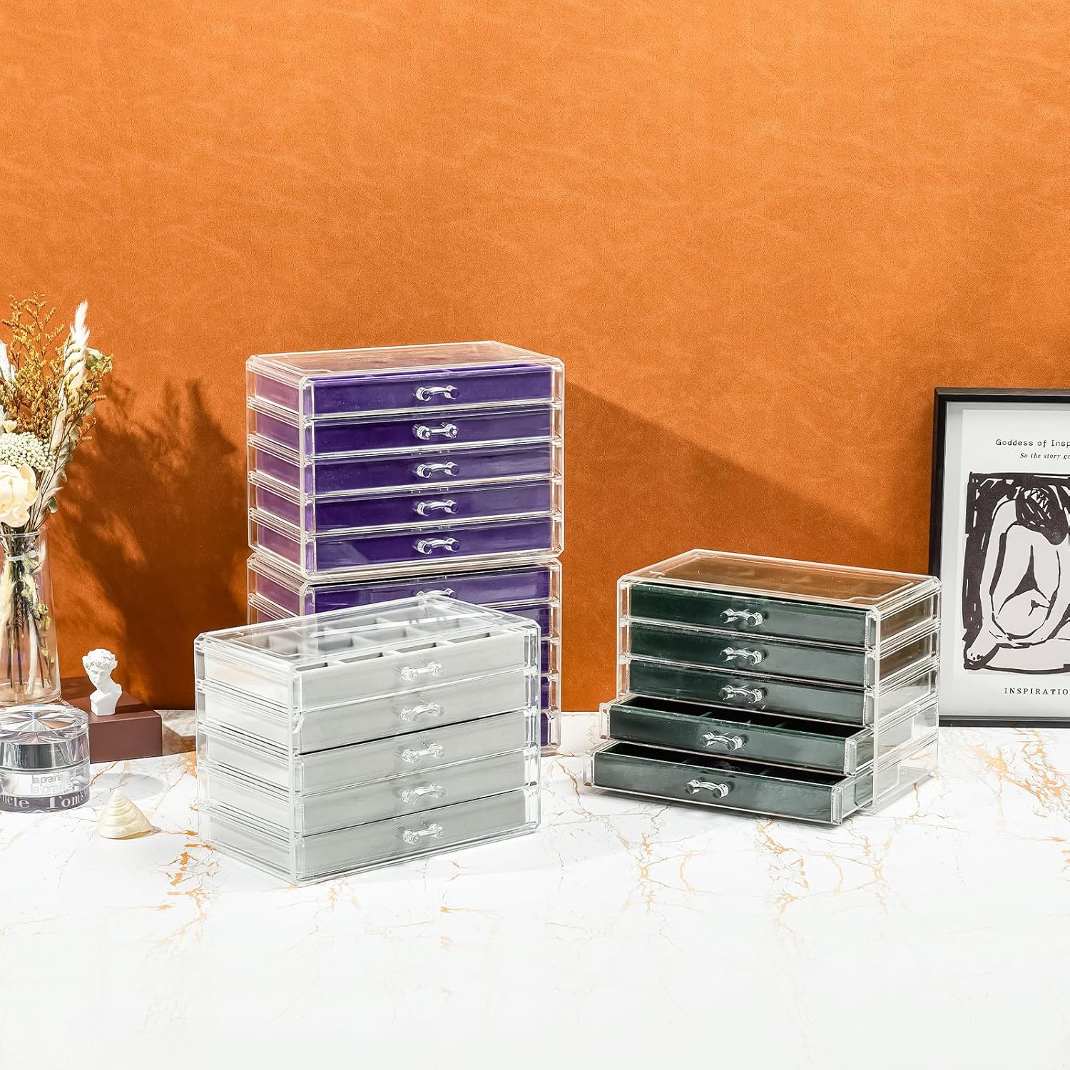 - ✅ 5 herausnehmbare Fächer aus Samt - 5 Schubladen lassen sich mit leicht zu greifenden Griffen herausziehen. Die Samtfächer auf jeder Ebene können von den Schubladen abgetrennt und zum Organisieren anderer grösserer Gegenstände verwendet werden