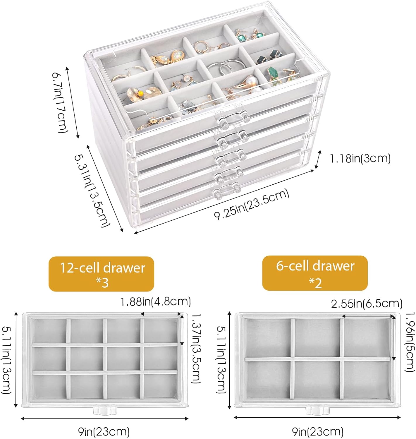 - ✅ 5 herausnehmbare Fächer aus Samt - 5 Schubladen lassen sich mit leicht zu greifenden Griffen herausziehen. Die Samtfächer auf jeder Ebene können von den Schubladen abgetrennt und zum Organisieren anderer grösserer Gegenstände verwendet werden