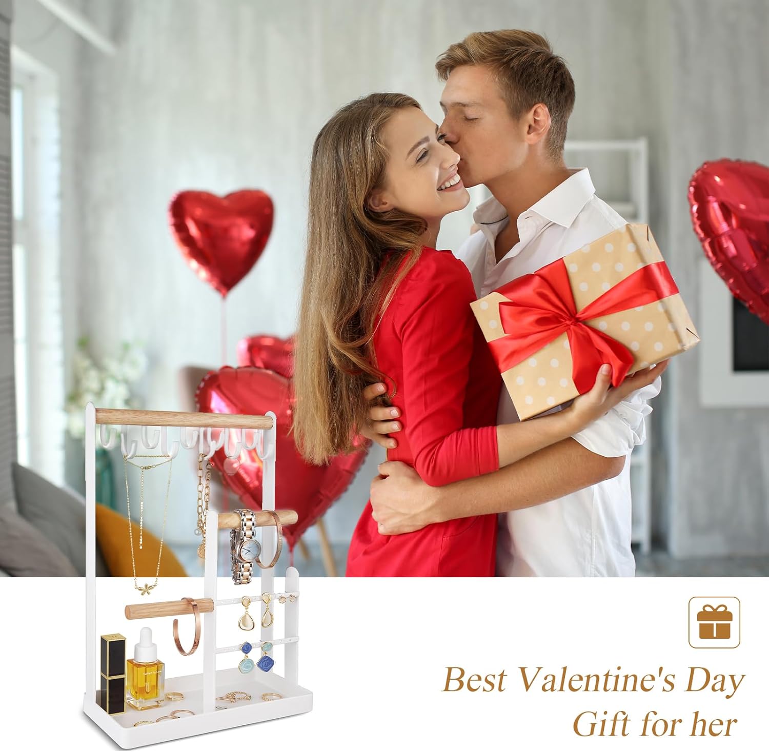 - Das stilvolle Design passt zu allen Einrichtungsstilen: Durch die Kombination von Metall- und Holzelementen schafft der Schmuckständer eine moderne und warme Atmosphäre, egal ob auf dem Schminktisch, im Bad oder auf dem Tisch.
