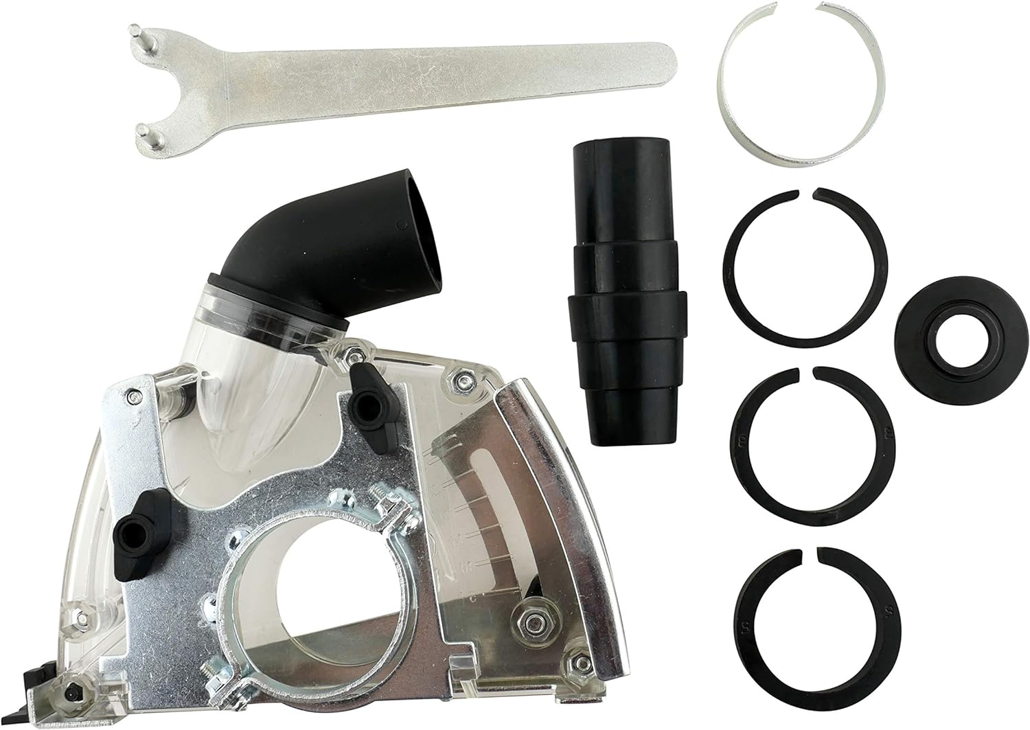 - Lieferumfang: Absaughaube, 4 Adapterringe für verschiedene Winkelschleifer, Gummiadapter für die Absaugung, Montagewerkzeug