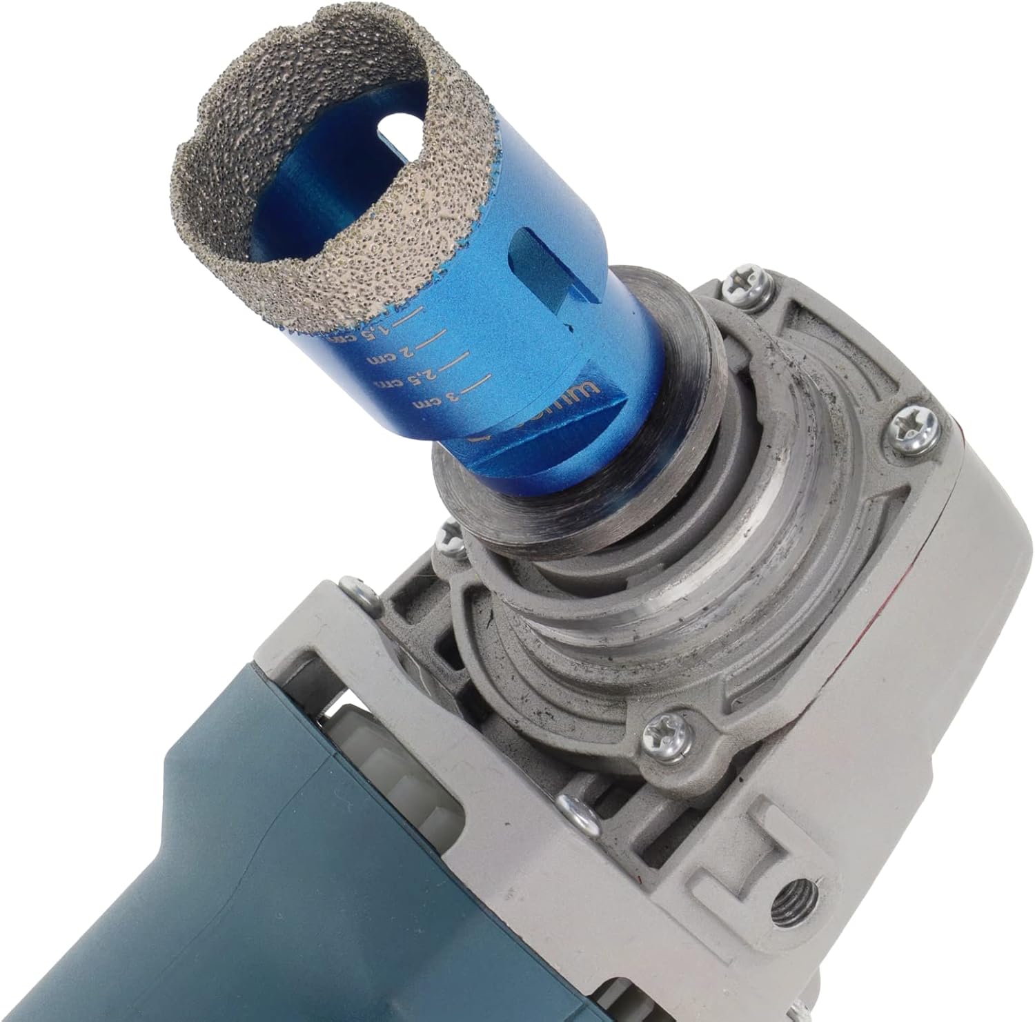 - Fliesenbohrer ø 38mm Durchmesser, M14 Aufnahme, Diamant Trockenbohrer mit Premium Vakuum Diamantsegment, 15mm Diamantbeschichtung, 35mm Nutzlänge, passend für handelsübliche Winkelschleifer mit M14 Spindel