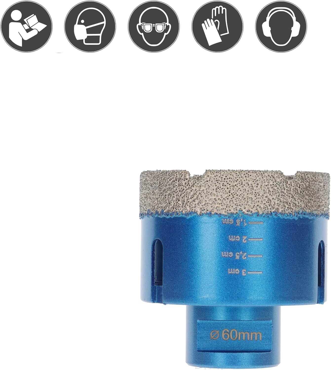 - Fliesenbohrer ø 60mm Durchmesser, M14 Aufnahme, Diamant Trockenbohrer mit Premium Vakuum Diamantsegment, 15mm Diamantbeschichtung, 35mm Nutzlänge, passend für handelsübliche Winkelschleifer mit M14 Spindel