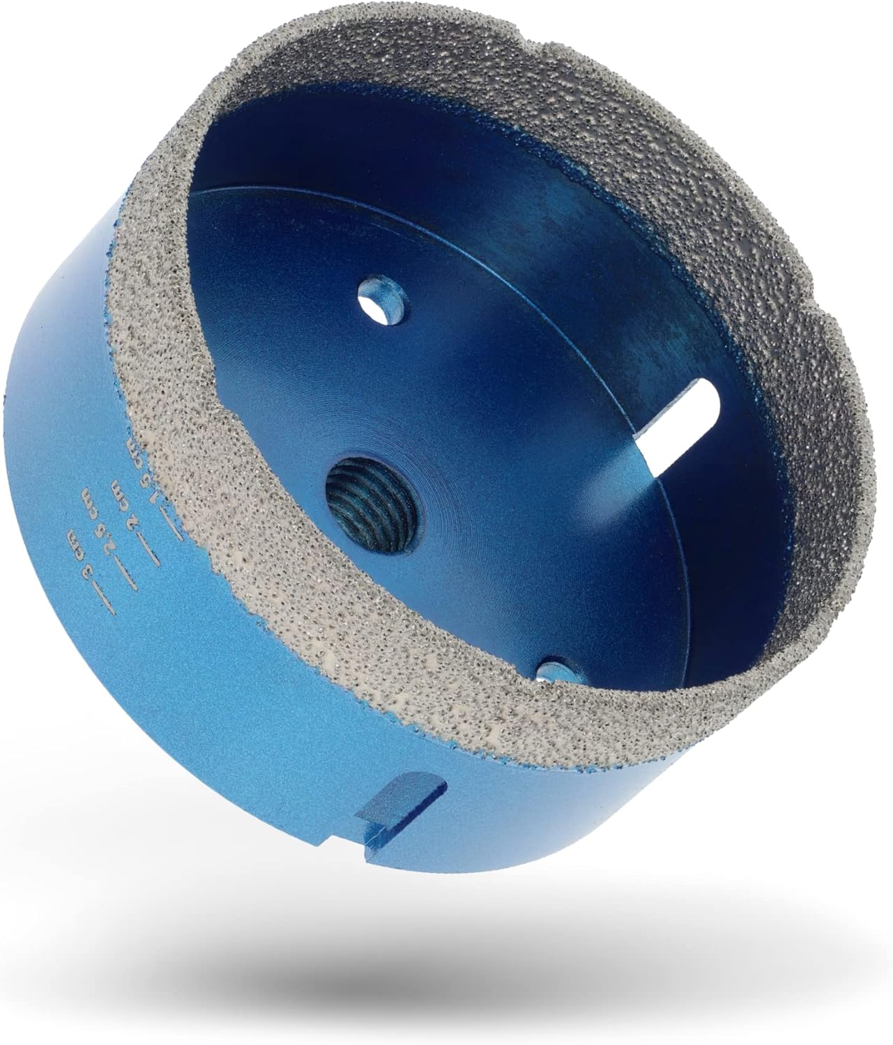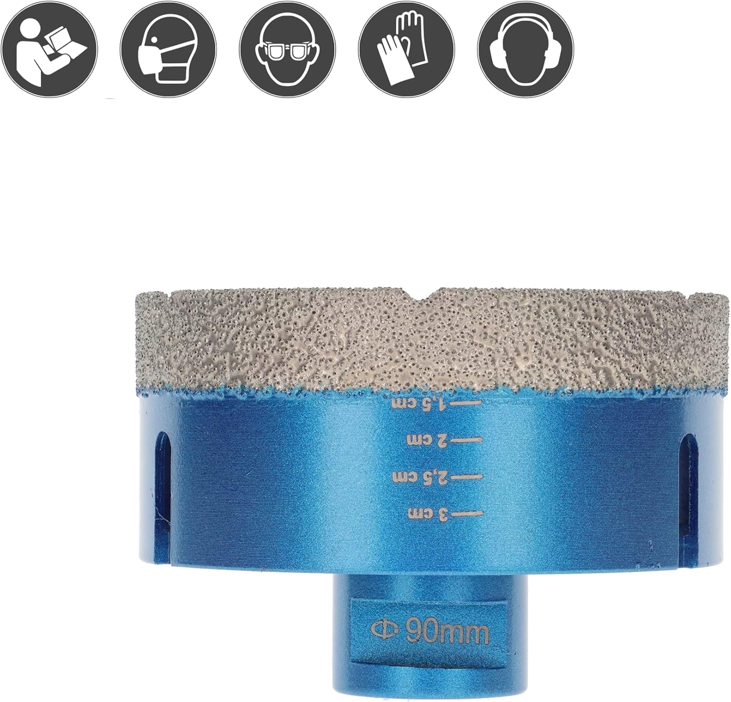 - Fliesenbohrer ø 90mm Durchmesser, M14 Aufnahme, Diamant Trockenbohrer mit Premium Vakuum Diamantsegment, 15mm Diamantbeschichtung, 35mm Nutzlänge, passend für handelsübliche Winkelschleifer mit M14 Spindel
