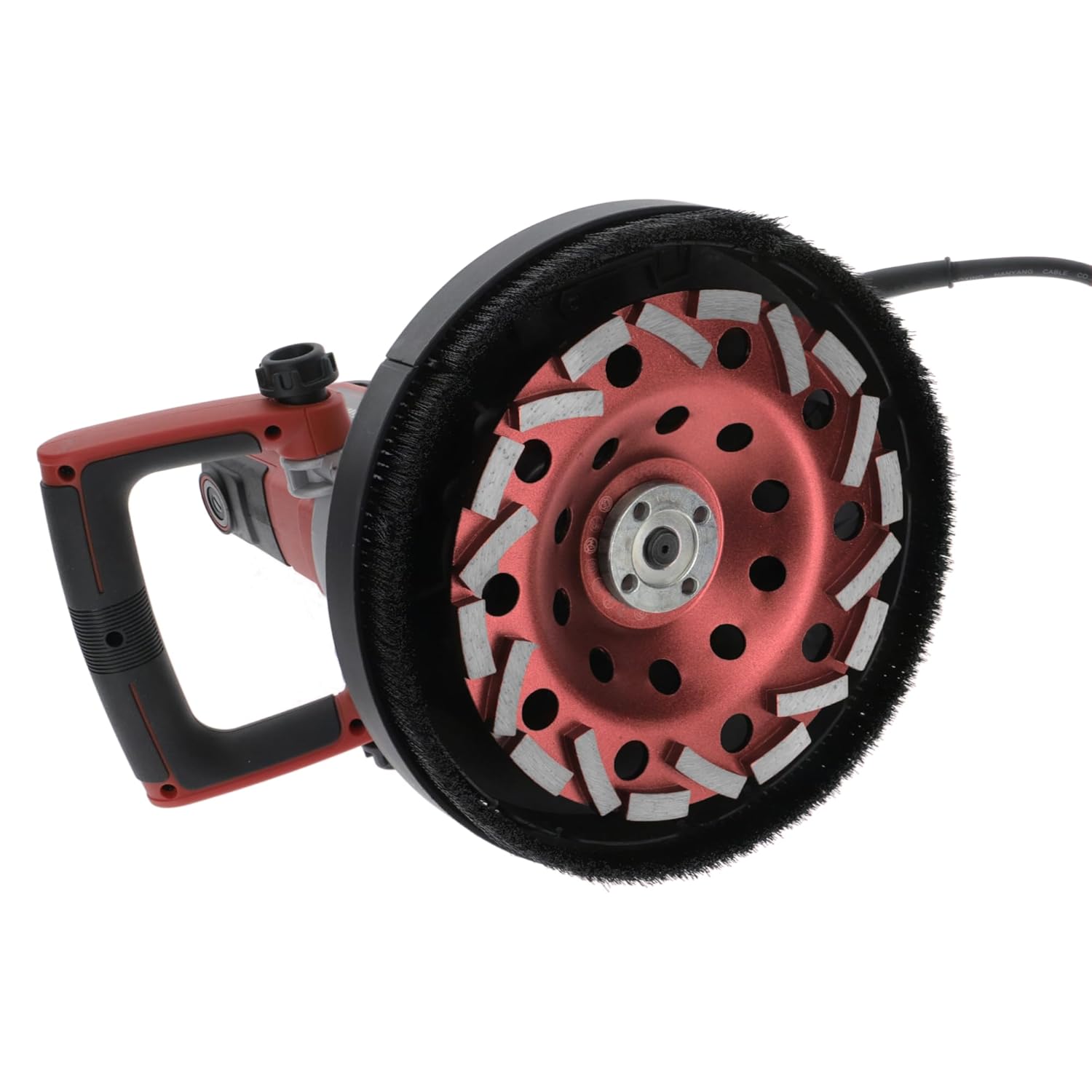 - TECHNISCHE DATEN: Mit einem Durchmesser von ø180mm passt der Schleiftopf auf handelsübliche Winkelschleifer und Betonschleifer die auf dieses Mass ausgelegt sind. Die Bauhöhe beträgt 27mm und die Segmentierung ist 5mm Stark.