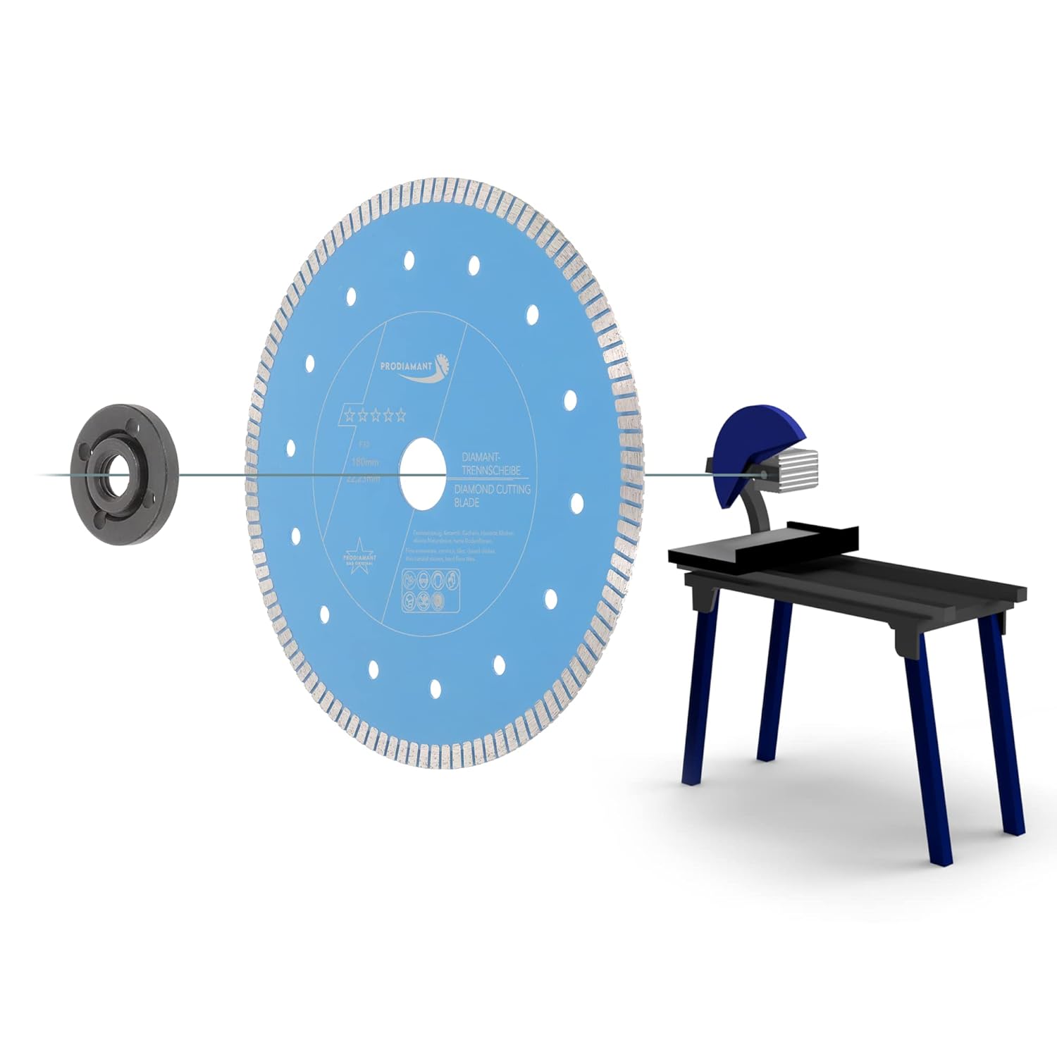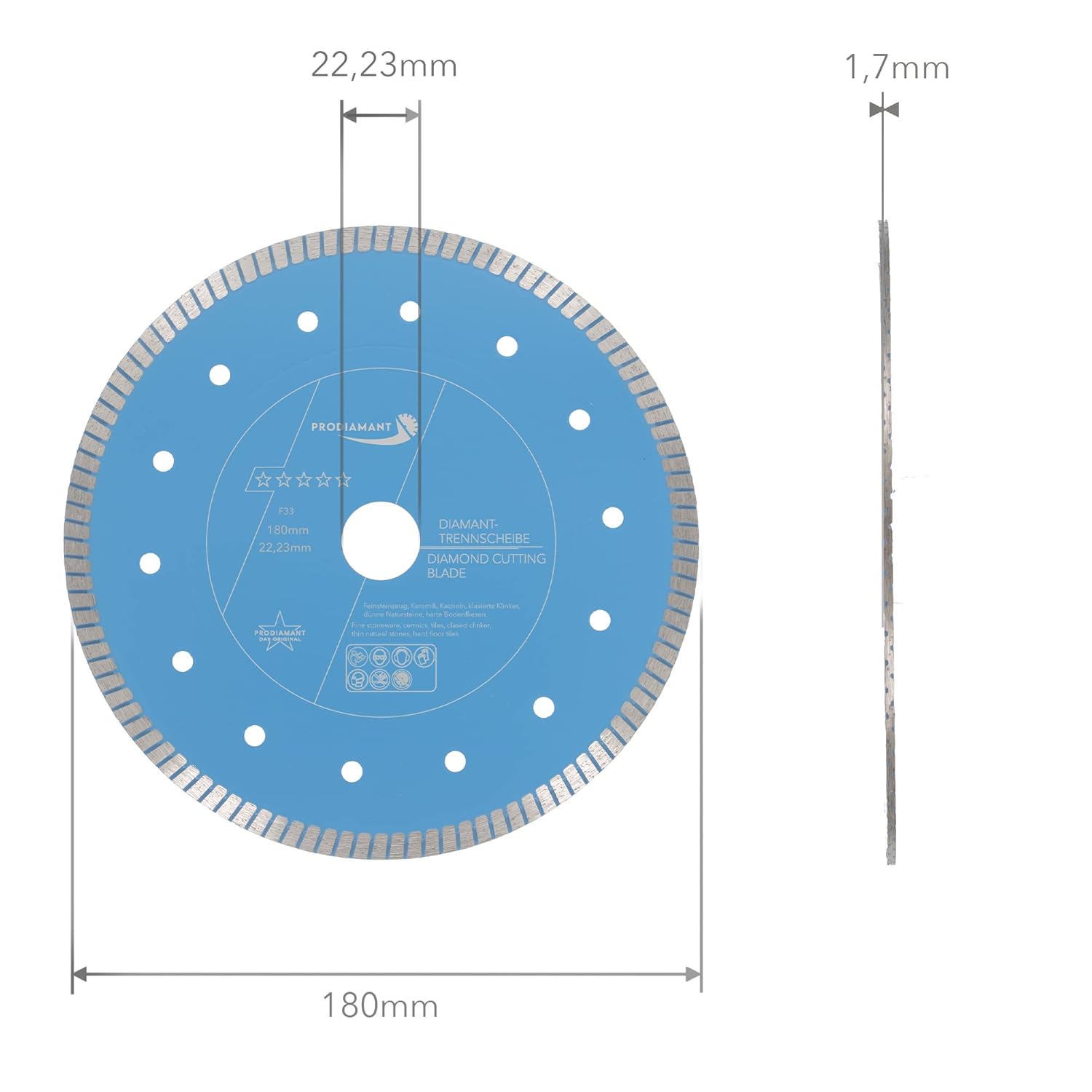 - 180mm Diamantscheibe mit Bohrung 22,23mm geschlossenem gezahnten Turbosegment, Bronzebindung mit hoher Diamantkonzentration, lange Lebensdauer passend für Fliesensäge, Tischsäge, Nasssäge, Brückensäge, Wasserbadsäge, Fliesenschneidmaschine,