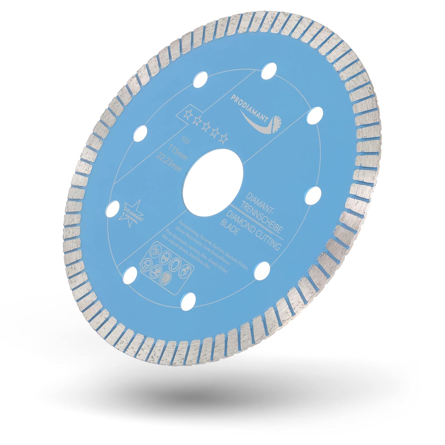 - 115mm Fliesenscheibe, ultra dünnes 7mm Turbo Rondo Segment, abgestimmt auf schnelles schneiden in Fliesen Feinsteinzeug und Naturstein, Aufnahme 22,23mm Bohrung passend für Winkelschleifer der Marken Bosch, Makita, Festool, Flex, Metabo, Würth,