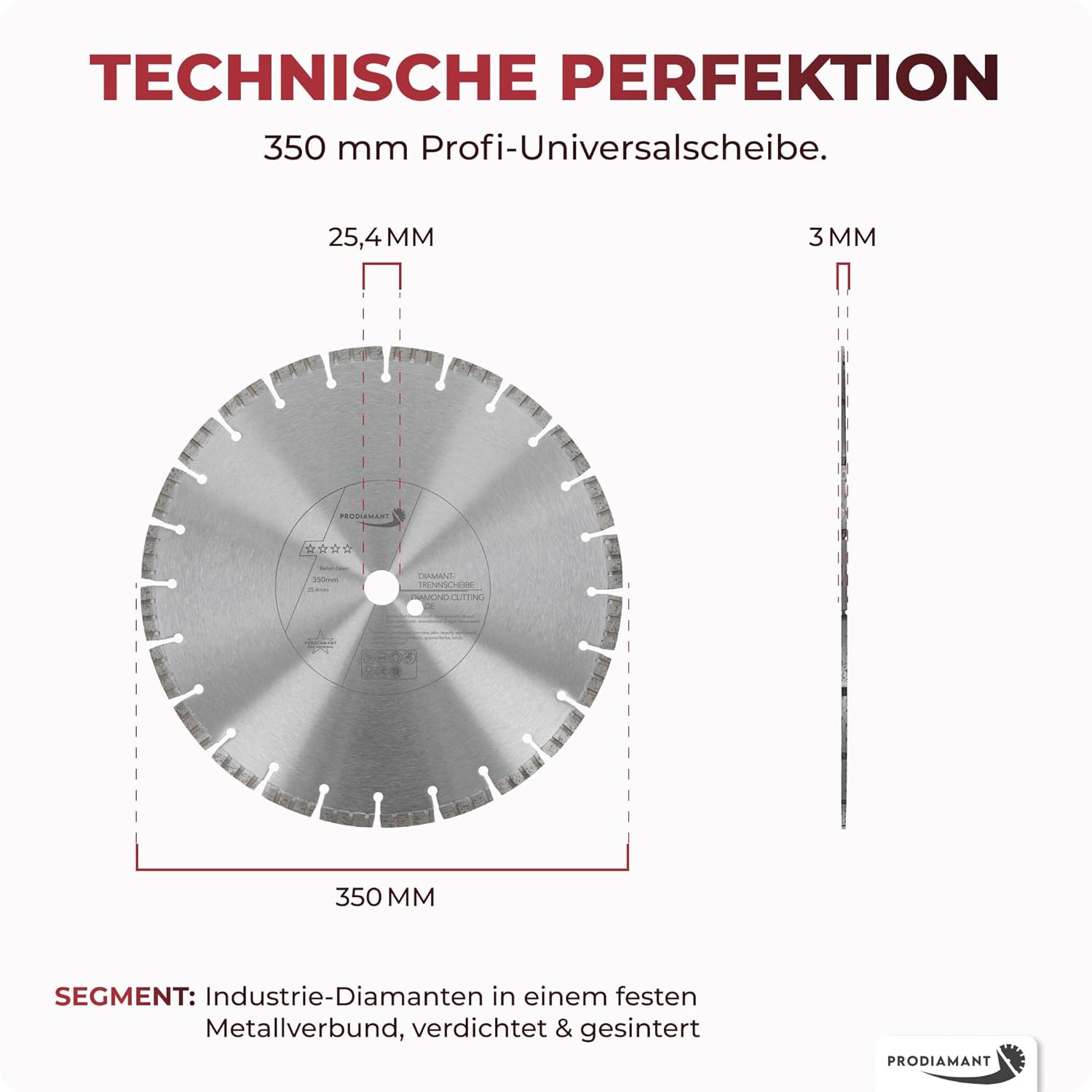 - EIGENSCHAFTEN: Die Beton Laser Scheibe zeichnet sich durch Lasergeschweisste Turbosegmente aus, diese sind stabil, universell und effizient. Besonders geeignet bei wechselnden Baustoffen, Stahl-Armierungen, unterschiedliche Härte und Dichte. Zum