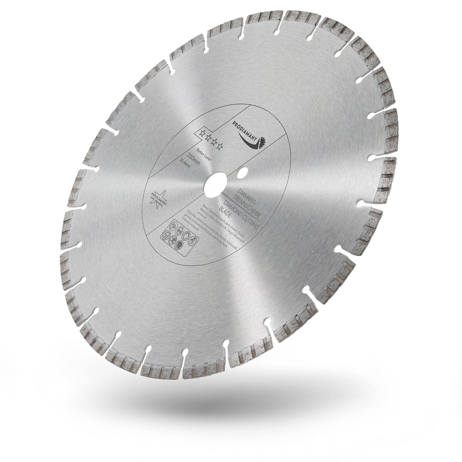 - TECHNISCHE DATEN: Diamantscheibe ø 350 mm mit Bohrung 25,4, 10mm Turbo Lasersegment, 3,3mm stark, schneller Schnitt und standfest. Trennscheibe mit lasergeschweisten Segmenten passend für Trennjäger und Motortrennschleifer. Schnitttiefe ca. 125 mm