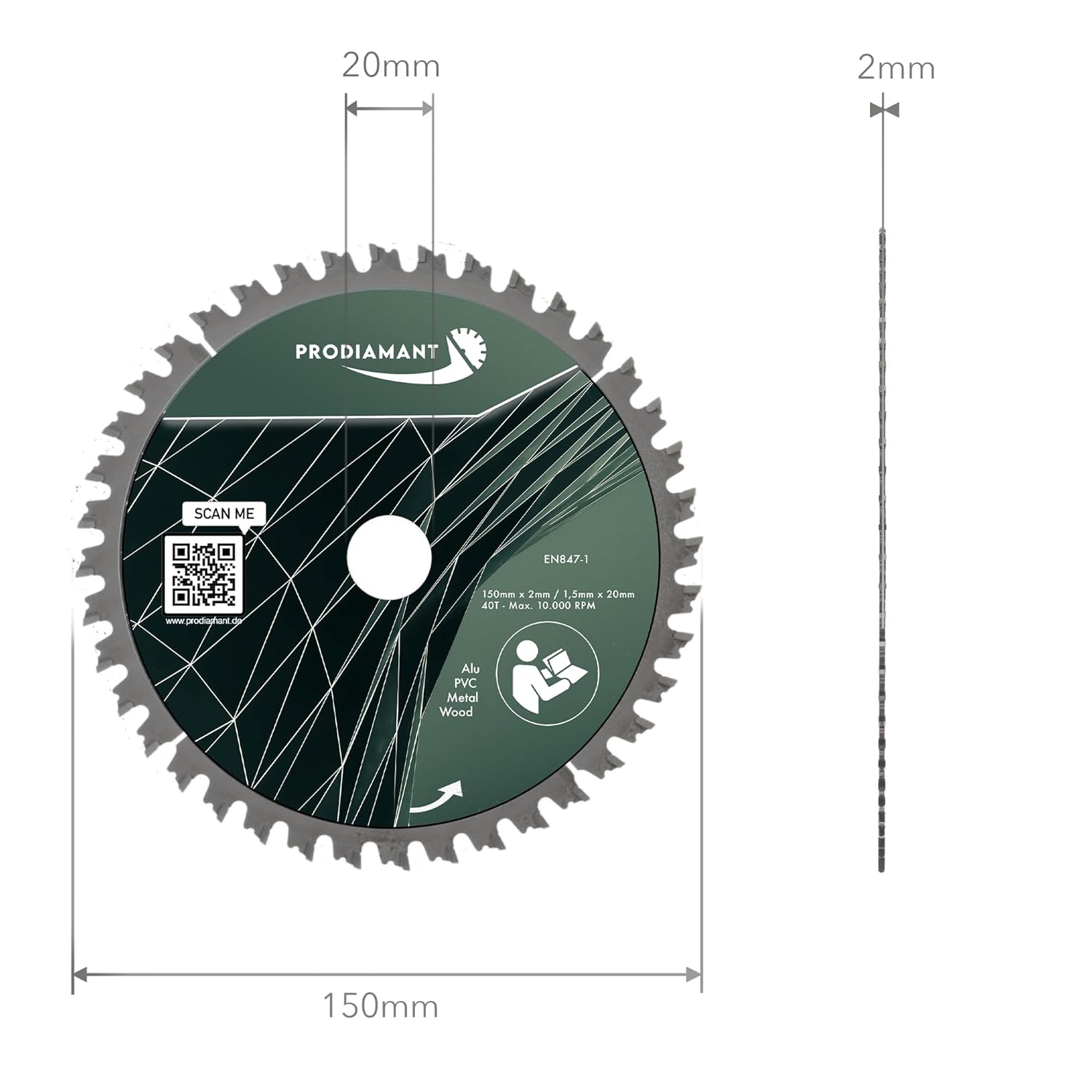 PRODIAMANT Multi Sägeblatt 150 x 20 mm Hartmetallsägeblatt für Holz, Alu, Kunstoff und Laminat mit H