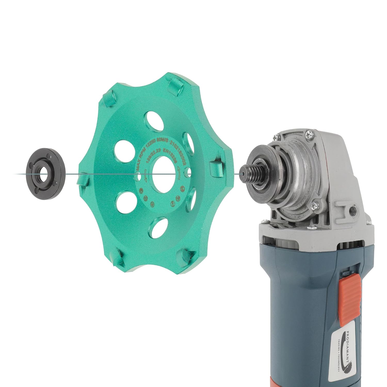 - 125mm Schleifteller mit Bohrung 22,23mm, Segmenthöhe 5mm Bauhöhe 21mm passend für Winkelschleifer, Betonschleifer, Betonfräsen, Wandschleifsyteme und Bodenschleifer mit M14 Gewindespindel