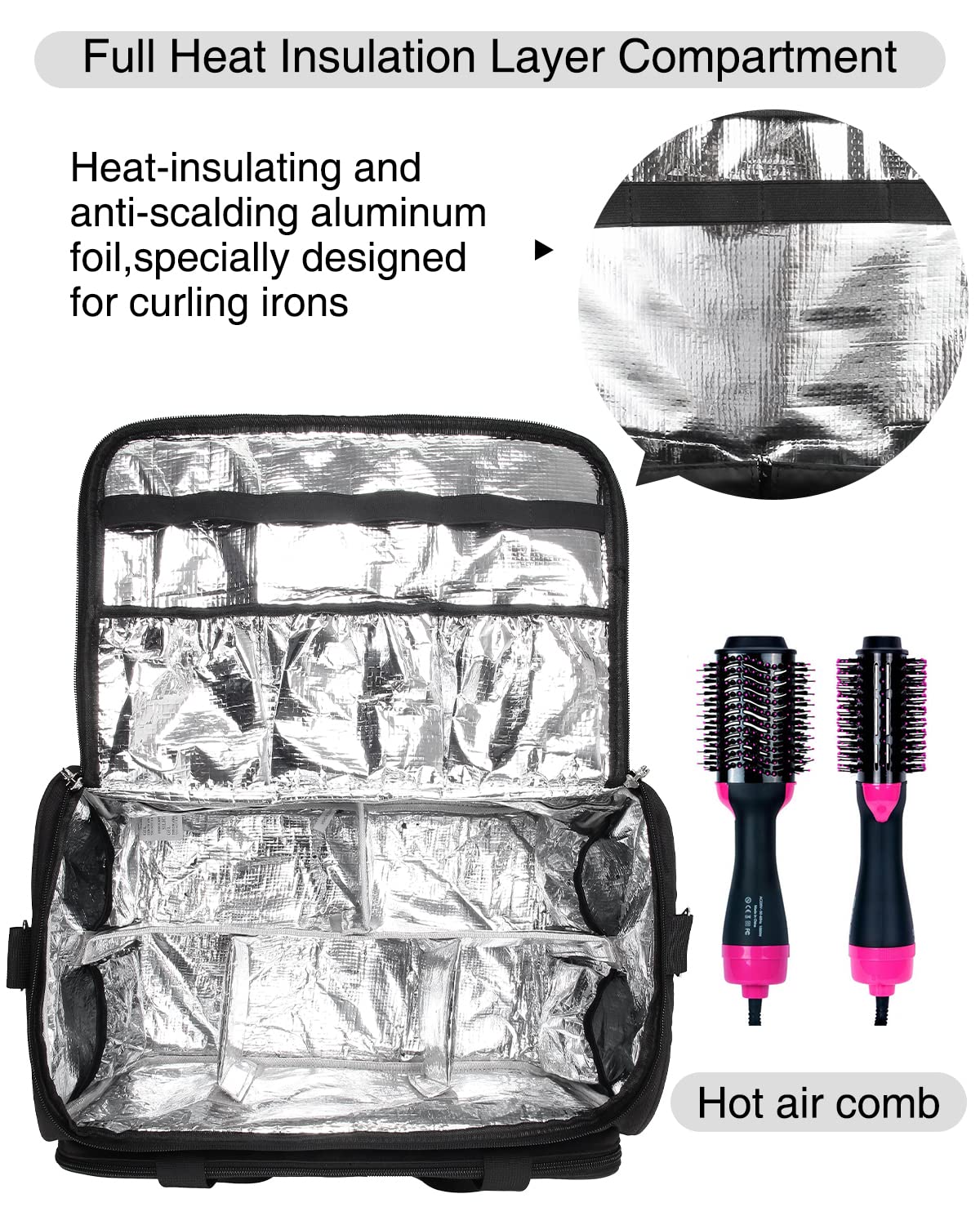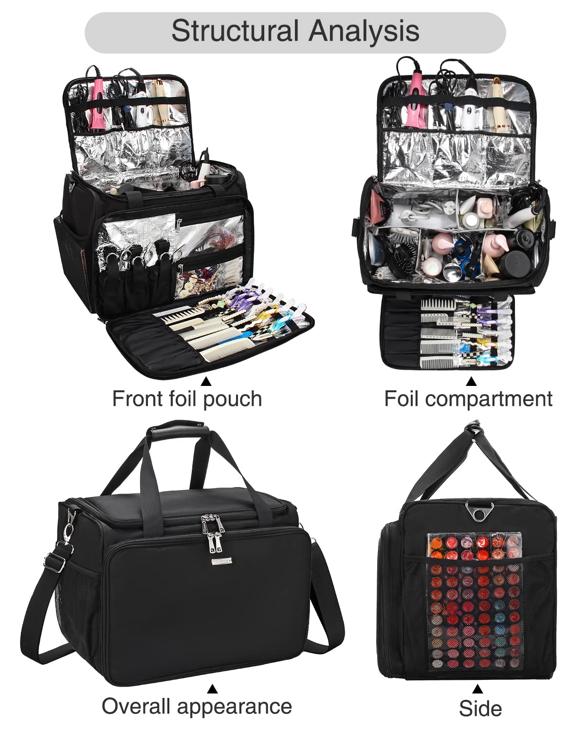 - Grosse Kapazität: Die Grösse der Friseurtasche ist 15.8inch*11.4inch*11inch, mit der reichen Taschenstruktur und dem super grossen Fach innerhalb der Tasche, passend für die Aufbewahrung von Haartrockner, Lockenstab, Schere, Kamm, Haarclips, Shampoo,