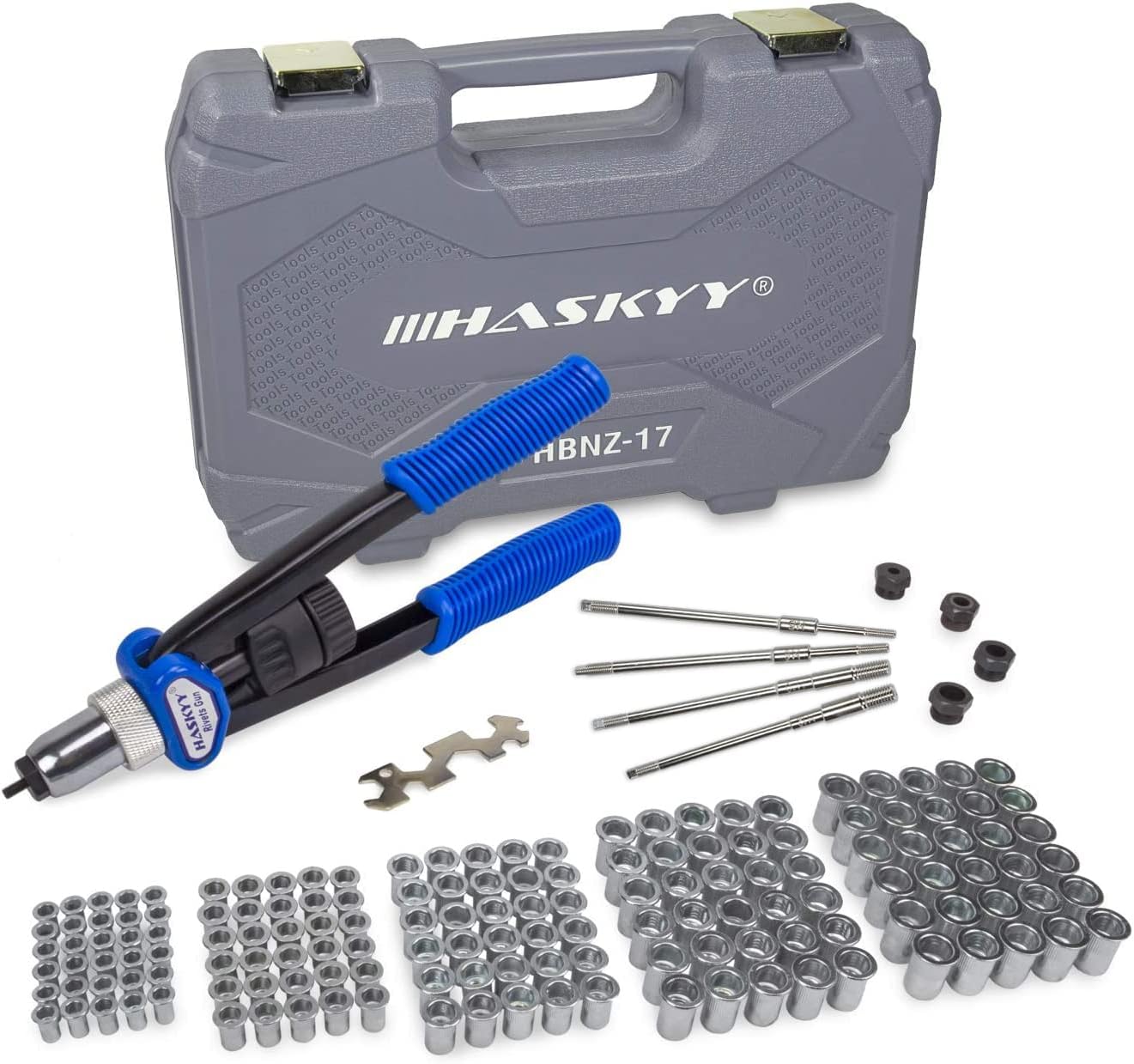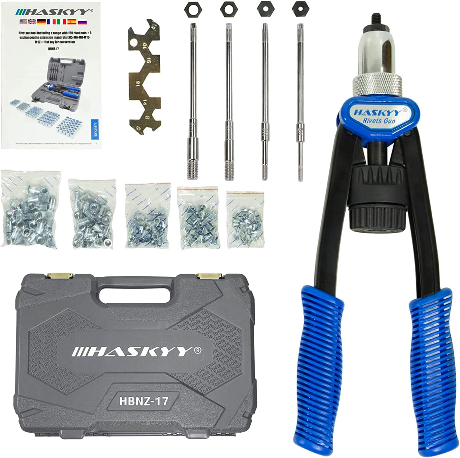 - 162tlg. Haskyy Profi Nietmutternzange-Set ✔ 150 Nietmuttern - M5-M6-M8-M10-M12 - je 30 Stück ✔ im praktischen Systemkoffer