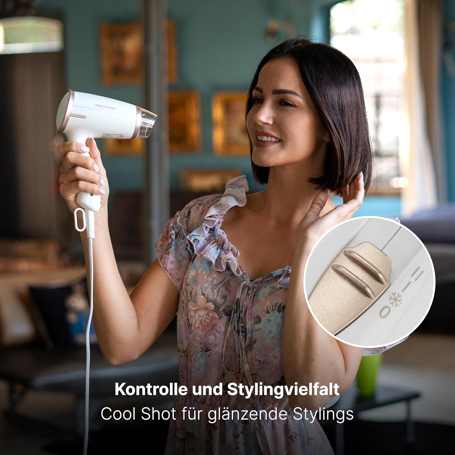- Die Kaltstufe des Hair Dryers fixiert Ihr Styling und verleiht Ihrem Haar den letzten Schliff