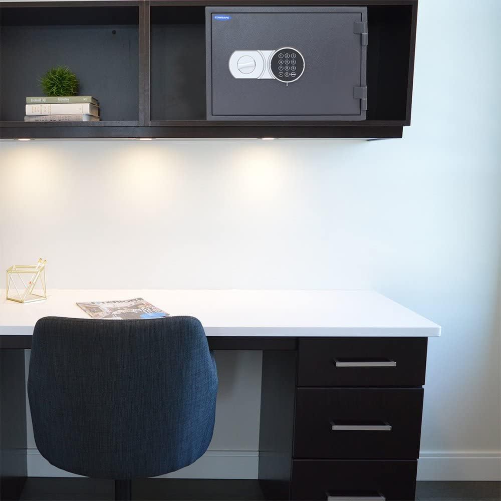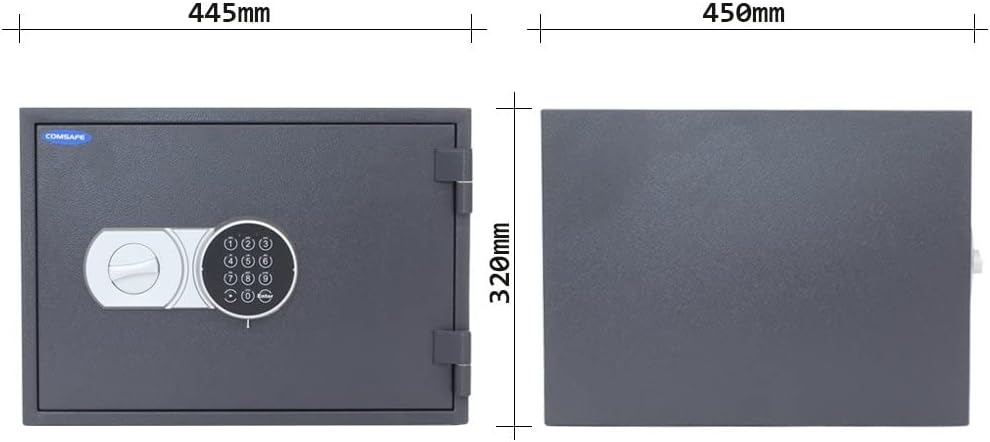 - SCHLOSS: Verschlossen wird der Tresor mit einem Elektronikschloss (4 Stück 1,5V AAA Batterien, nicht inklusive), Notöffnung per Mastercode möglich.