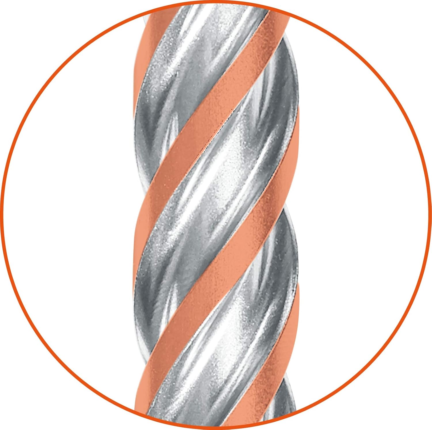 - Schutz: die Hartmetallplatte mit radial geformten ArmierungsSchutz verhindert das Einhaken bei Armierungstreffern und die kurzen Spiralanläufe sorgen für zügigen Abtransport des Bohrmehls in die Spirale