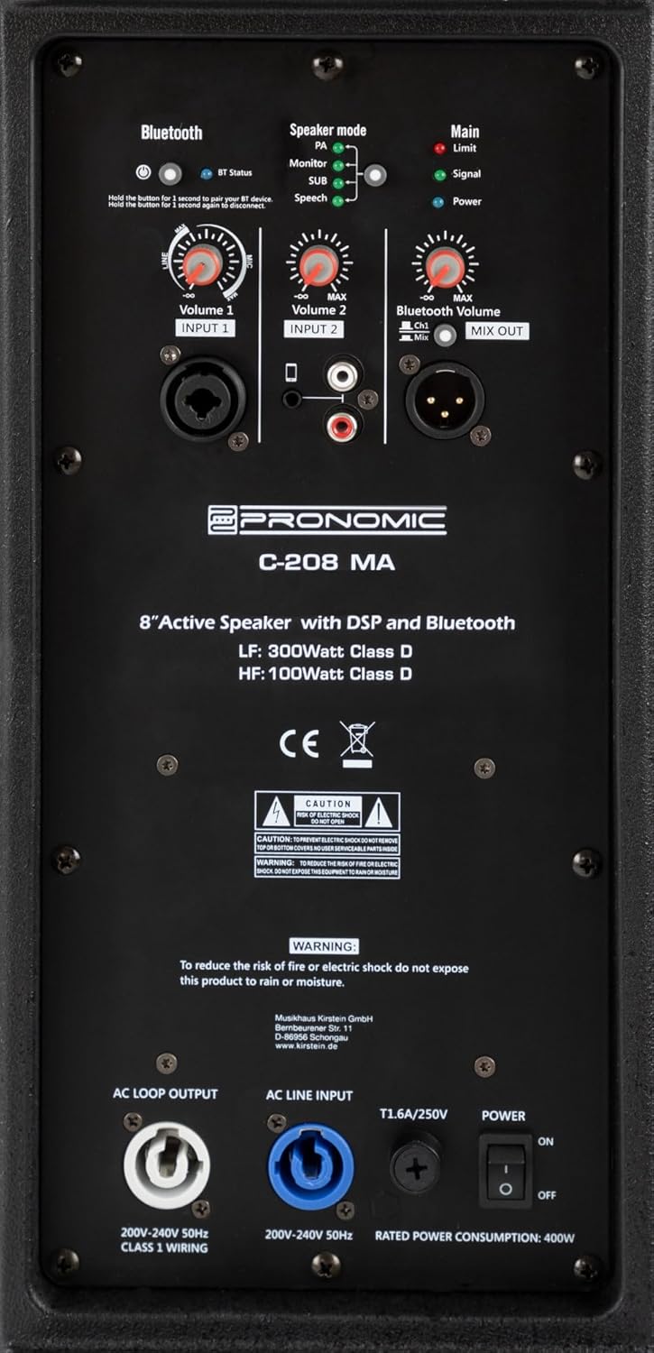 - Woofer: 8" (203 mm), Hochtöner: 1,0" Kompressions-Treiber, SPL: 117 dB, DSP: 48 kHz/24 bit, Klirrfaktor: ≤0,05%