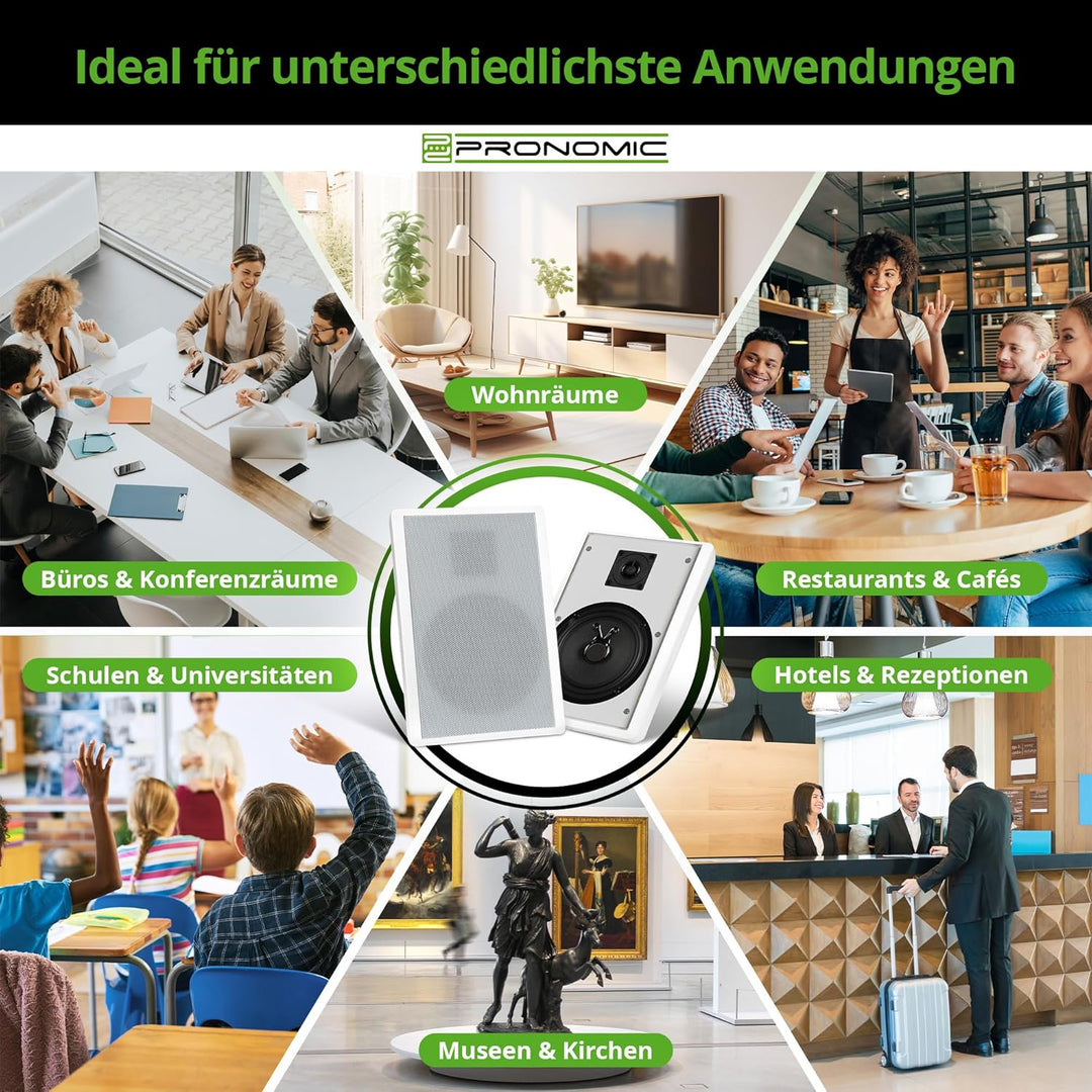 • FLEXIBLER EINSATZ - Diese Lautsprecher eignen sich ideal für den Einsatz in Wohnräumen, Büros oder öffentlichen Bereichen wie Restaurants und Museen.