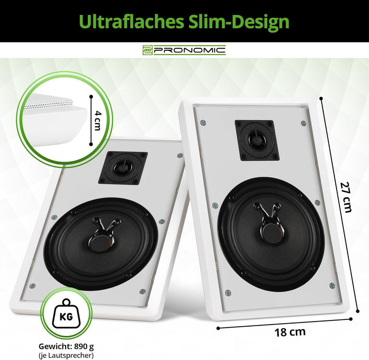 Pronomic FLS-540 WH Flatpanel Wandlautsprecher Boxen Paar (HiFi Flachlautsprecher, 2-Wege Box, 5,25"