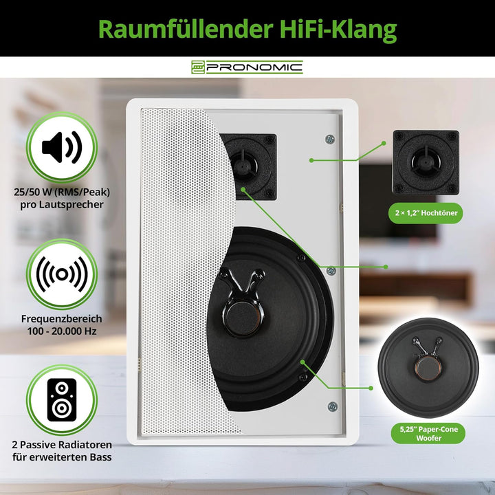 • KOMPAKTE LAUTSPRECHERGRÖSSEN - Die Pronomic FLS-540 WH Wandlautsprecher sind mit einem 5,25" Woofer ausgestattet, der zusammen mit einem 1,2" Tweeter einen ausgewogenen Klang bietet. Diese Kombination sorgt für klare Höhen und kräftige Bässe.