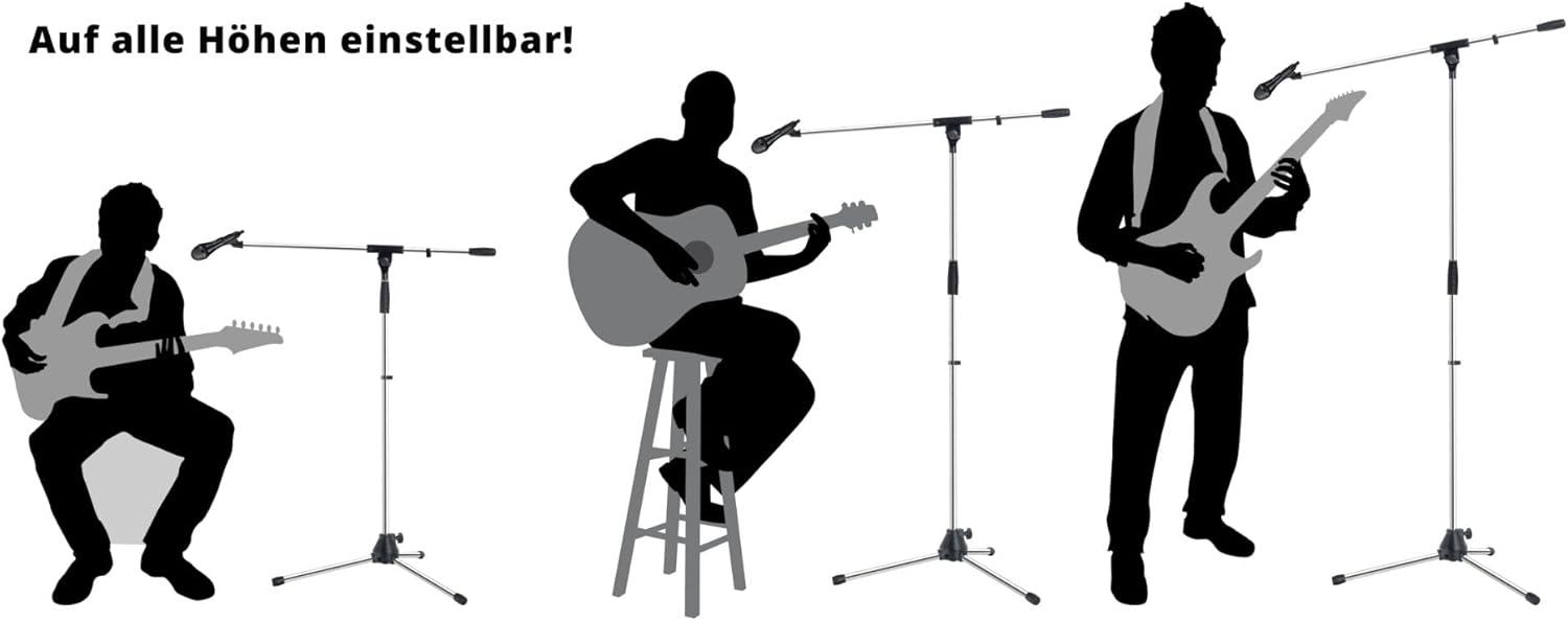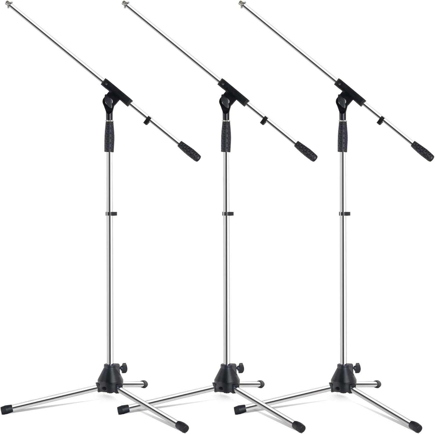 Pronomic Mikrofonständer MS-25C Pro 3x Set - dreibeinig mit Gummifüssen - Galgen in Länge und Neigun