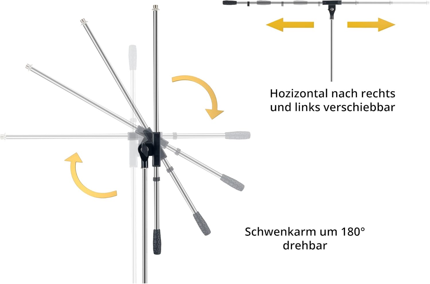• Maximale Höhe: 220 cm, Länge Galgen: 77 cm, Länge eingeklappt: 100 cm