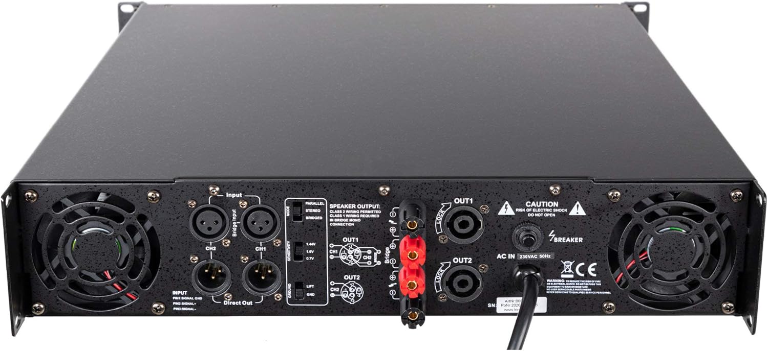- Ausgangsleistung (8 Ohm): 2 x 800 Watt, (4 Ohm): 2 x 1300 Watt, (2 Ohm): 2 x 1900 Watt