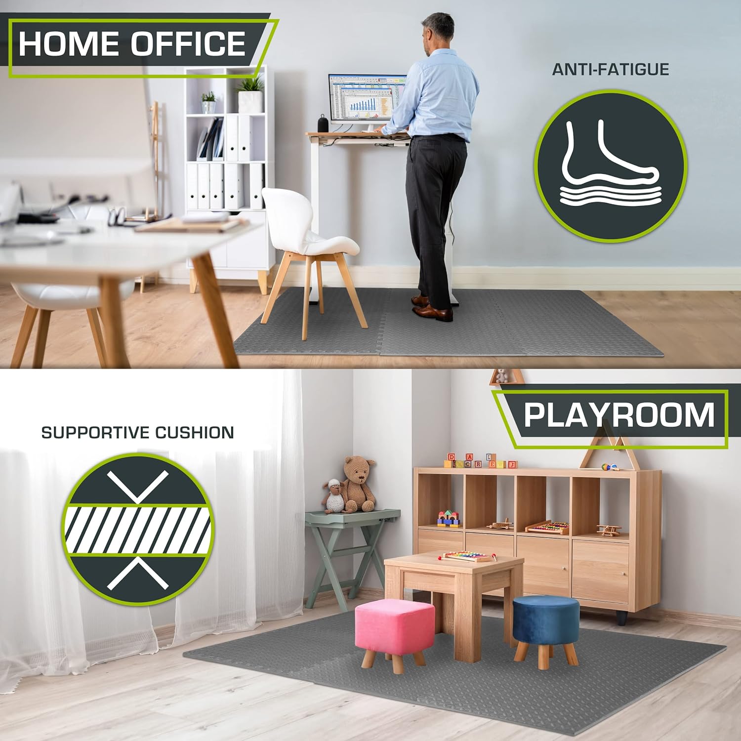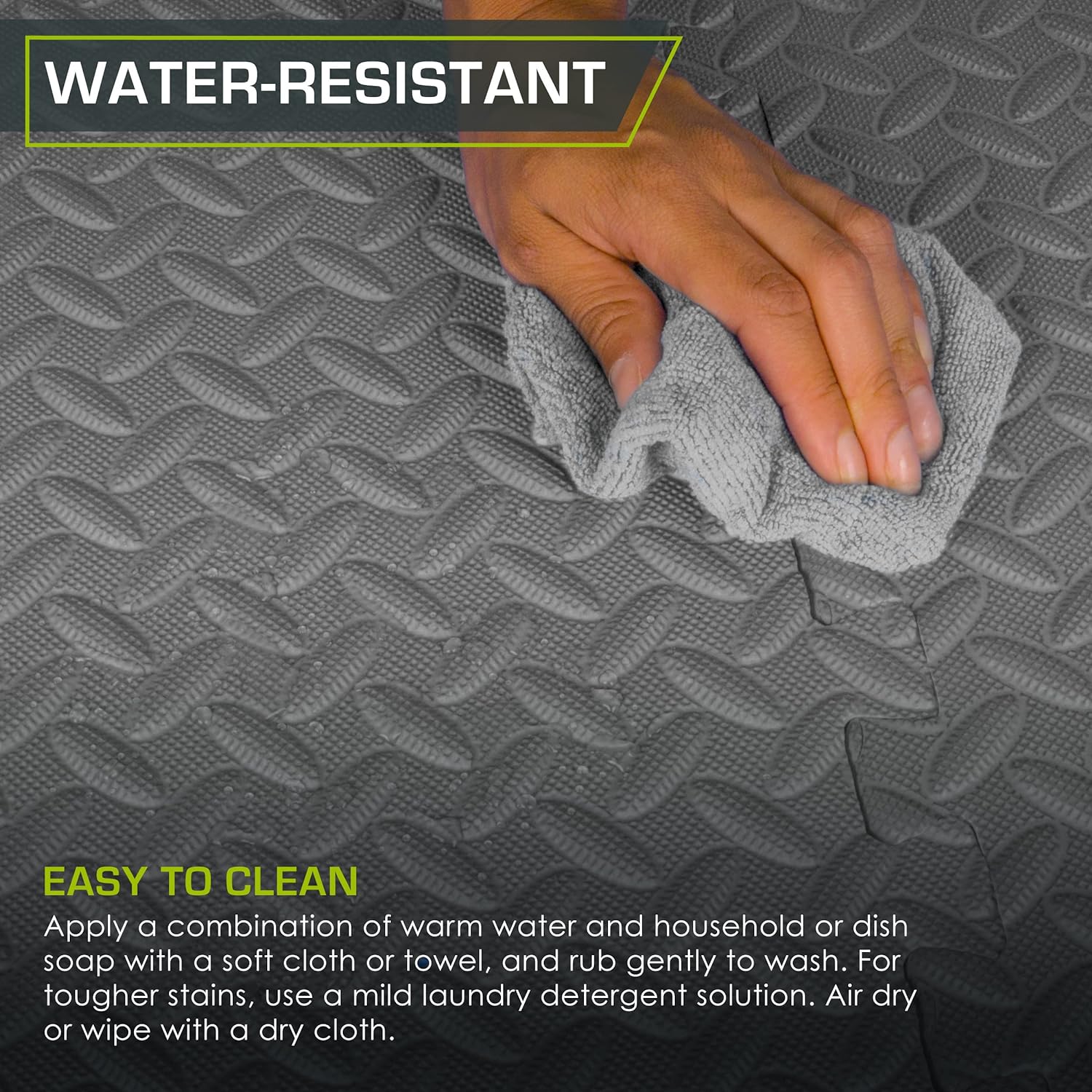 - VIELSEITIGE MATTE SPORT – Die wasserfeste, geräuschdämpfende Schaumstoffmatte ist leicht zu reinigen und eignet sich hervorragend für Innenräume - z. B. als Garagen Boden oder für Fitnessstudios, einen Heimfitnessraum oder als Spielmatte für Kinder.