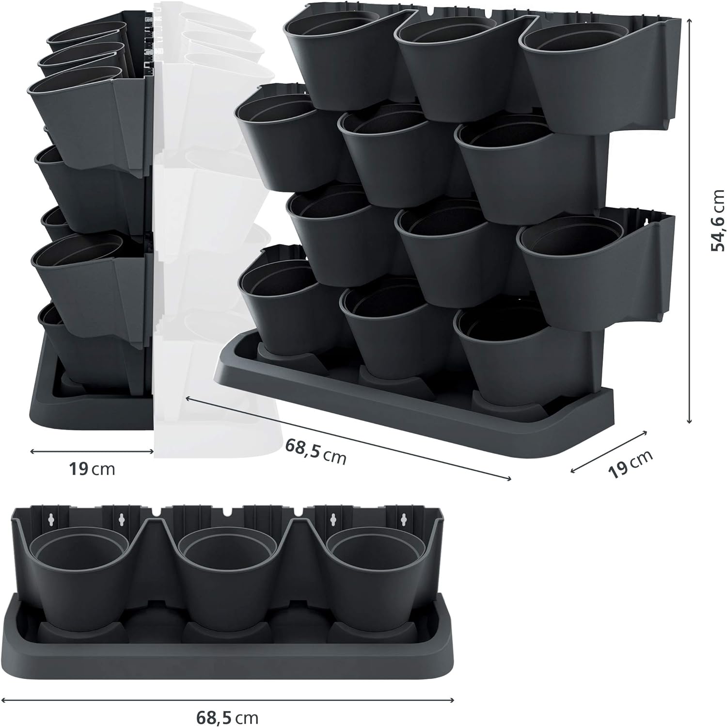 - Prosperplast Vertikaler Pflanzkübel Cascade Garden aus Kunststoff in Anthrazit 68,5 (L) x 19 (B) x 54,6 (H) cm