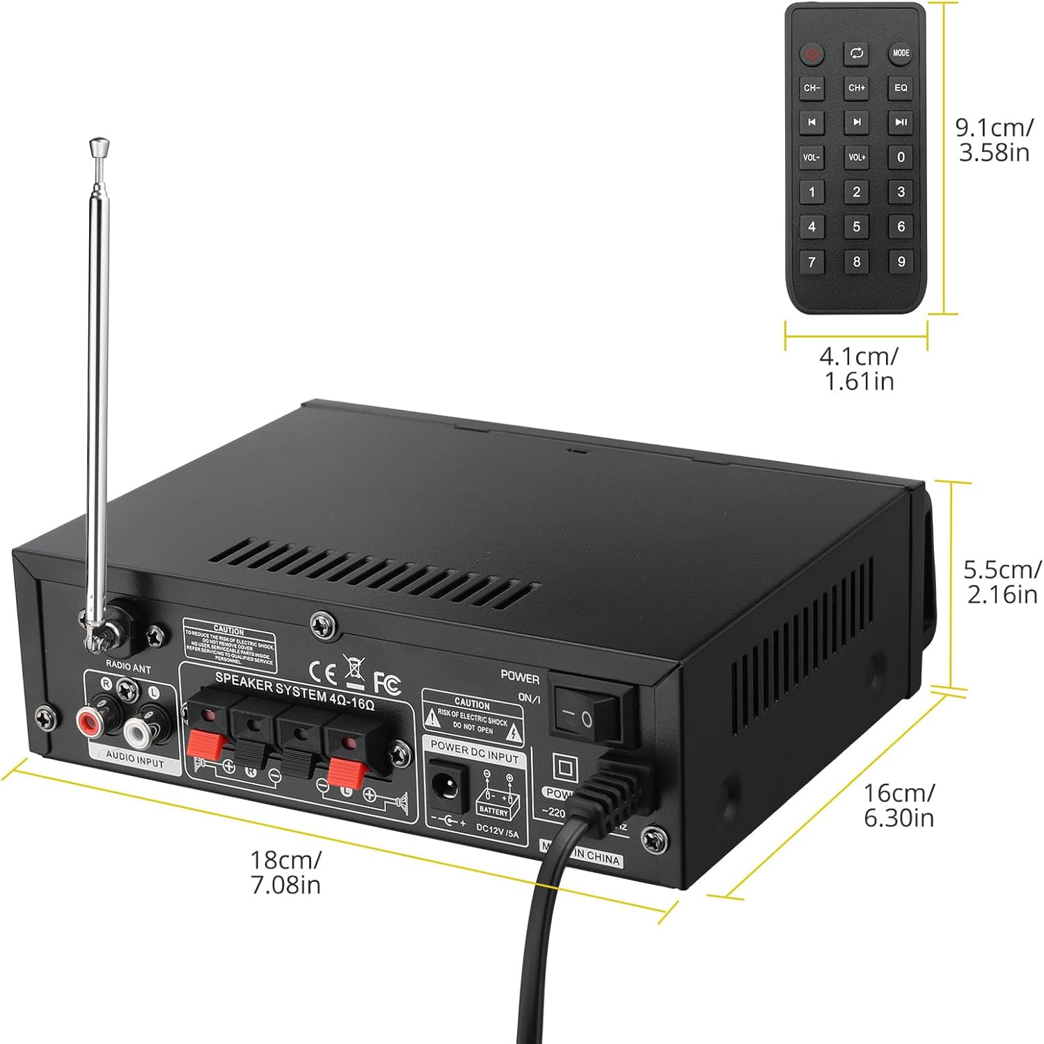 - 【Fernbedienung】 Dieser Verstärker ist mit einer Mini-Fernbedienung ausgestattet, die es Ihnen ermöglicht, das Gerät bequem aus jedem Winkel fernzusteuern und sich von Kabeln zu befreien. (Hinweis: Bitte entfernen Sie vor dem Gebrauch die