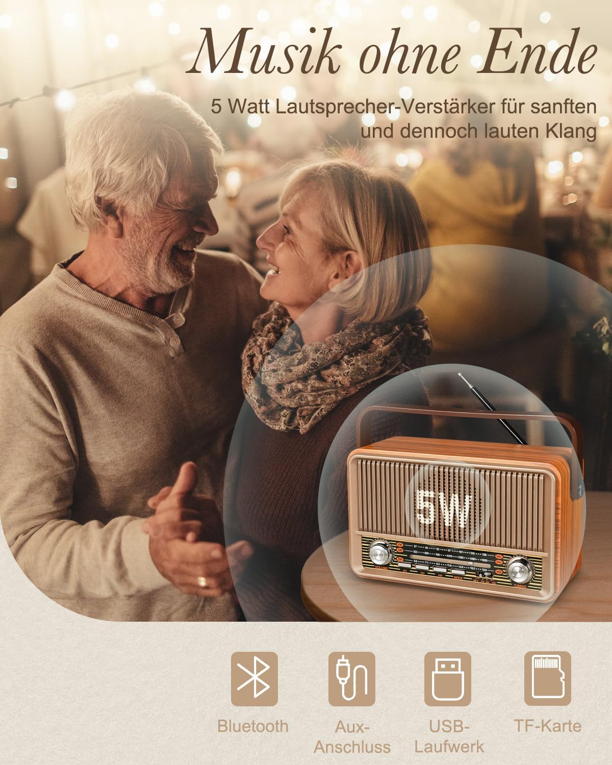 • 【Eine zeitlose Geschenkidee】Die perfekte Kombination aus elegantem Design und leistungsstarker Funktionalität macht dieses klassische Radio zu einem grossartigen Geschenk für jedermann, besonders für ältere Menschen und Musikliebhaber. Geeignet