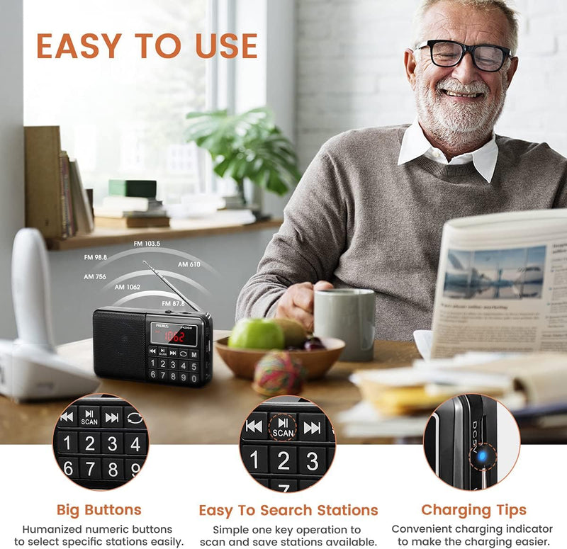 - ♥Augenfreundliches Design: 1) Grosse gummierte Knöpfe mit Beschriftung und ein grosses digitales Display sorgen für eine einfache Bedienbarkeit des Radios, auch für ältere Menschen mit Sehschwäche perfekt geeignet. 2) Einfache Bedienbarkeit: