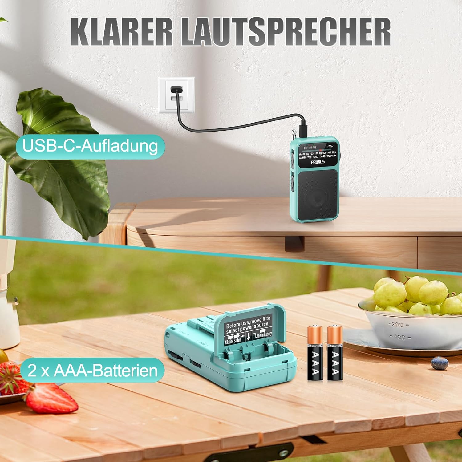 - 【Zwei Stromversorgungsoptionen】 Ausgestattet mit einem 800mAh-Akku lässt sich, dieses Akku Radio einfach mit dem mitgelieferten USB-C-Kabel aufladen und ist ideal für den täglichen Gebrauch. Wenn Sie im Freien sind und der Akku zur Neige geht,