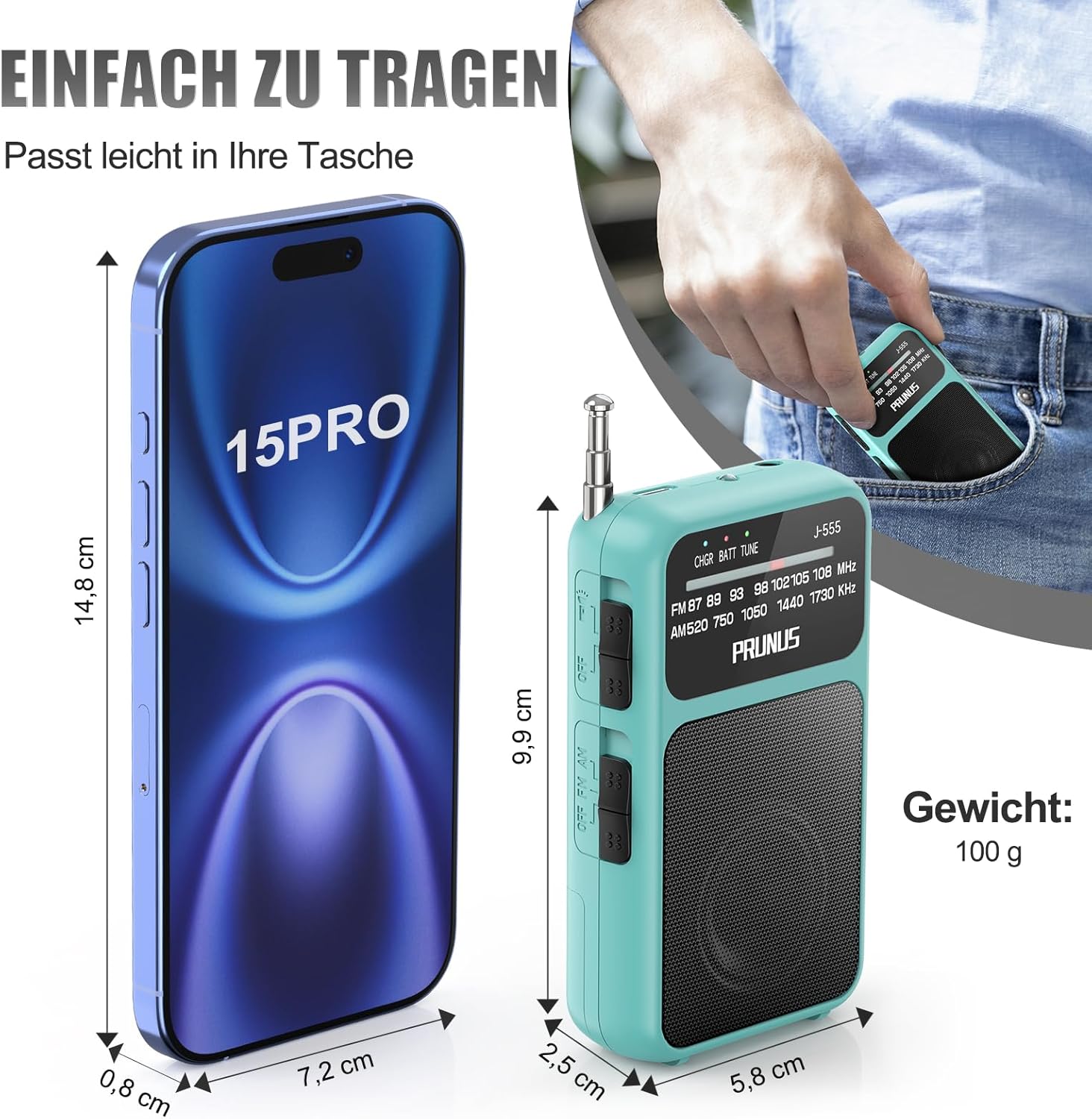 - 【Ultra Mini-Design】 Ein Taschenradio, das bequem in Ihre Hand passt! Mit den Massen 9,9 x 5,8 x 2,5 cm wiegt dieses leichte Miniradio nur 100 g. Ausgestattet mit einer Trageschlaufe und einem Clip können Sie es einfach an Ihrem Gürtel befestigen