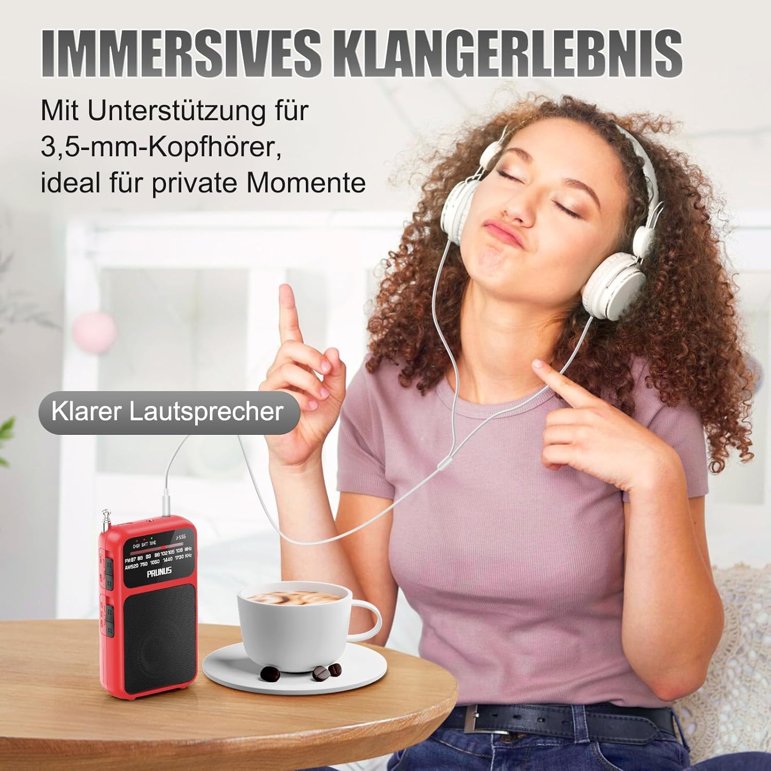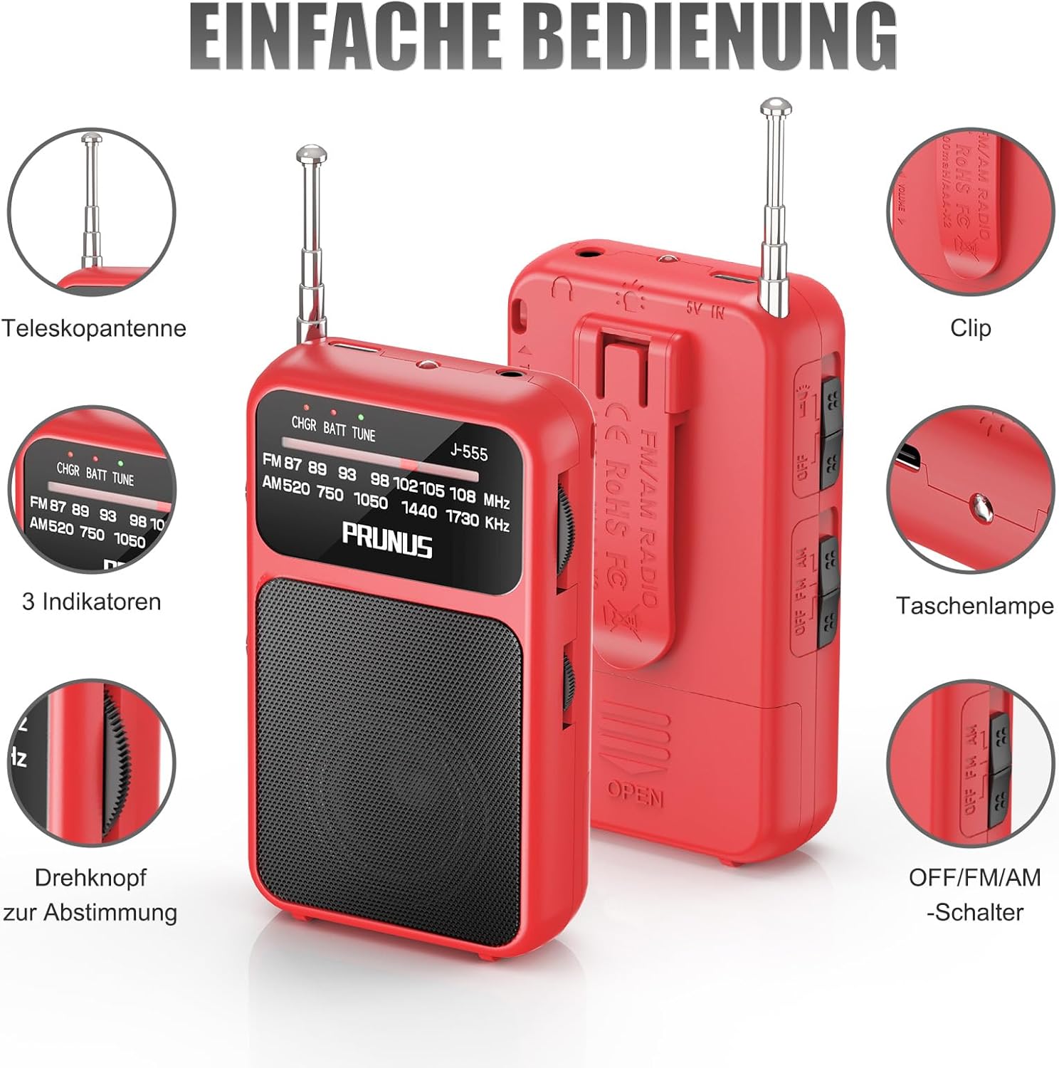 - 【Ultra Mini-Design】 Ein Taschenradio, das bequem in Ihre Hand passt! Mit den Massen 9,9 x 5,8 x 2,5 cm wiegt dieses leichte Miniradio nur 100 g. Ausgestattet mit einer Trageschlaufe und einem Clip können Sie es einfach an Ihrem Gürtel befestigen