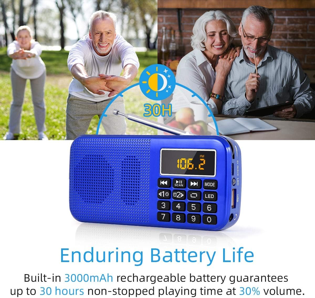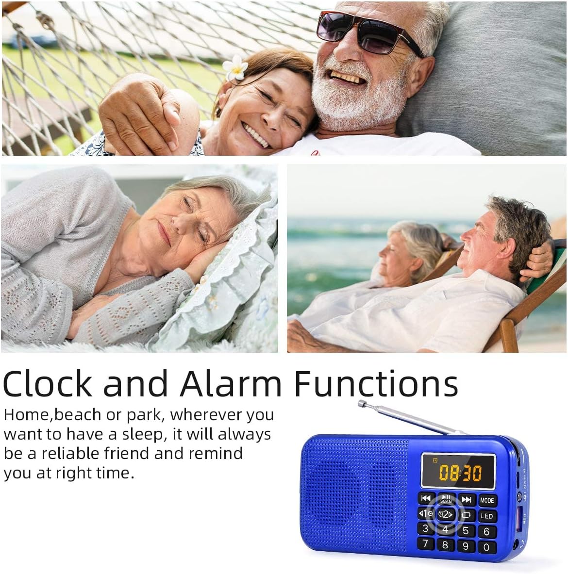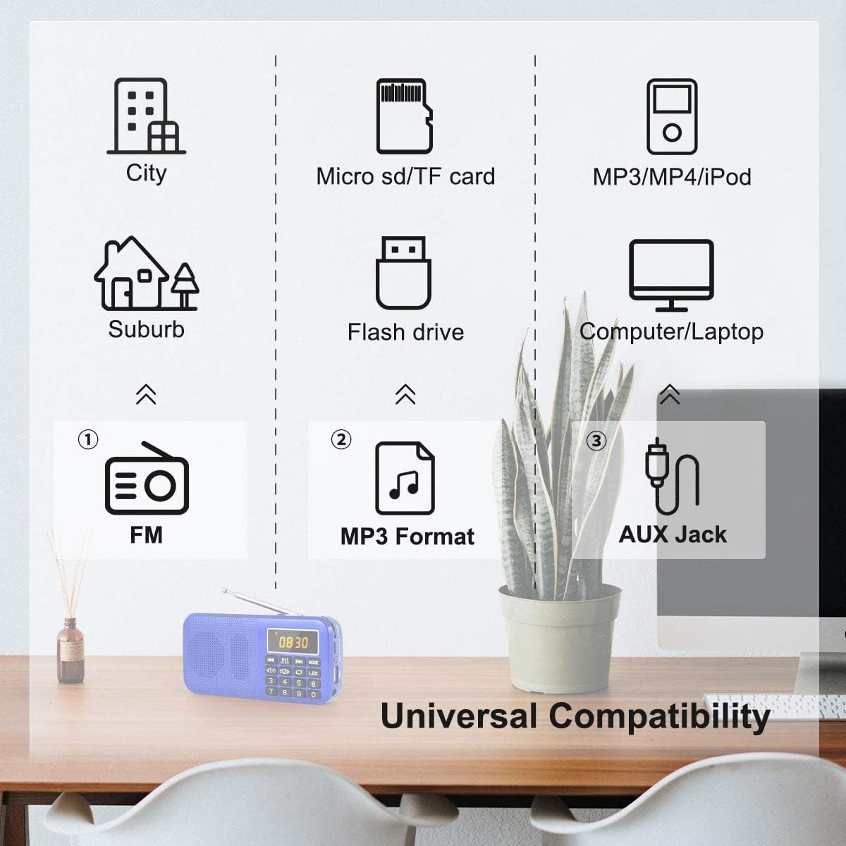 - ♥Vertrautes funktionales Design: 1) Das mini radio verfügen überUhr und Wecker Funktion.[※Hinweis:Wenn Sie Radio hören, zeigt der Bildschirm nur die Senderdaten in Megahertz an und hat keine Uhrfunktion]. 2) Notfall-Taschenlampe: J-725 batterie