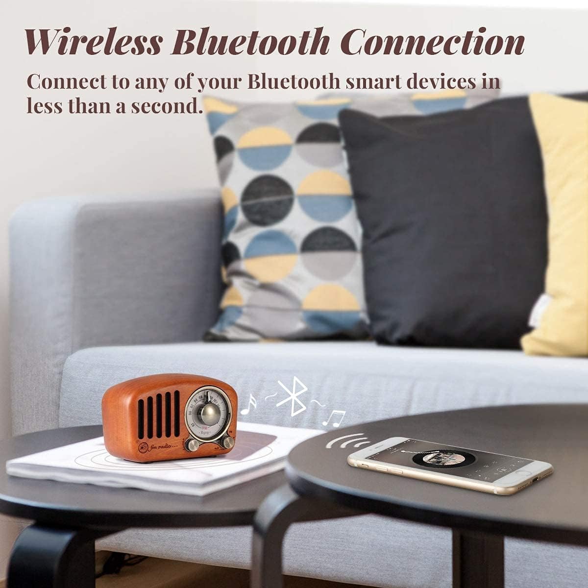 PRUNUS J-919 UKW FM Klassisches-Holz Retro Radio Klein, Tragbares Radio mit Bluetooth Lautsprecher,