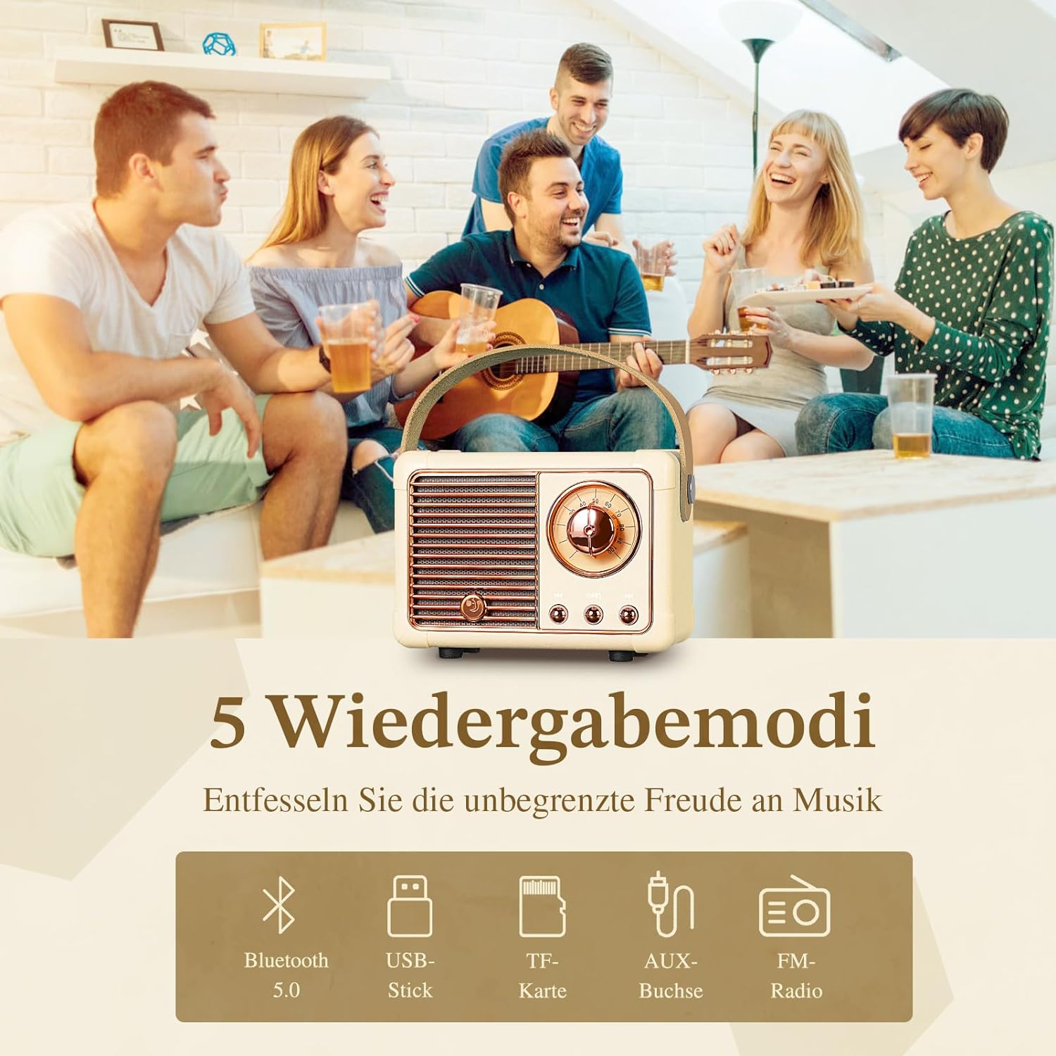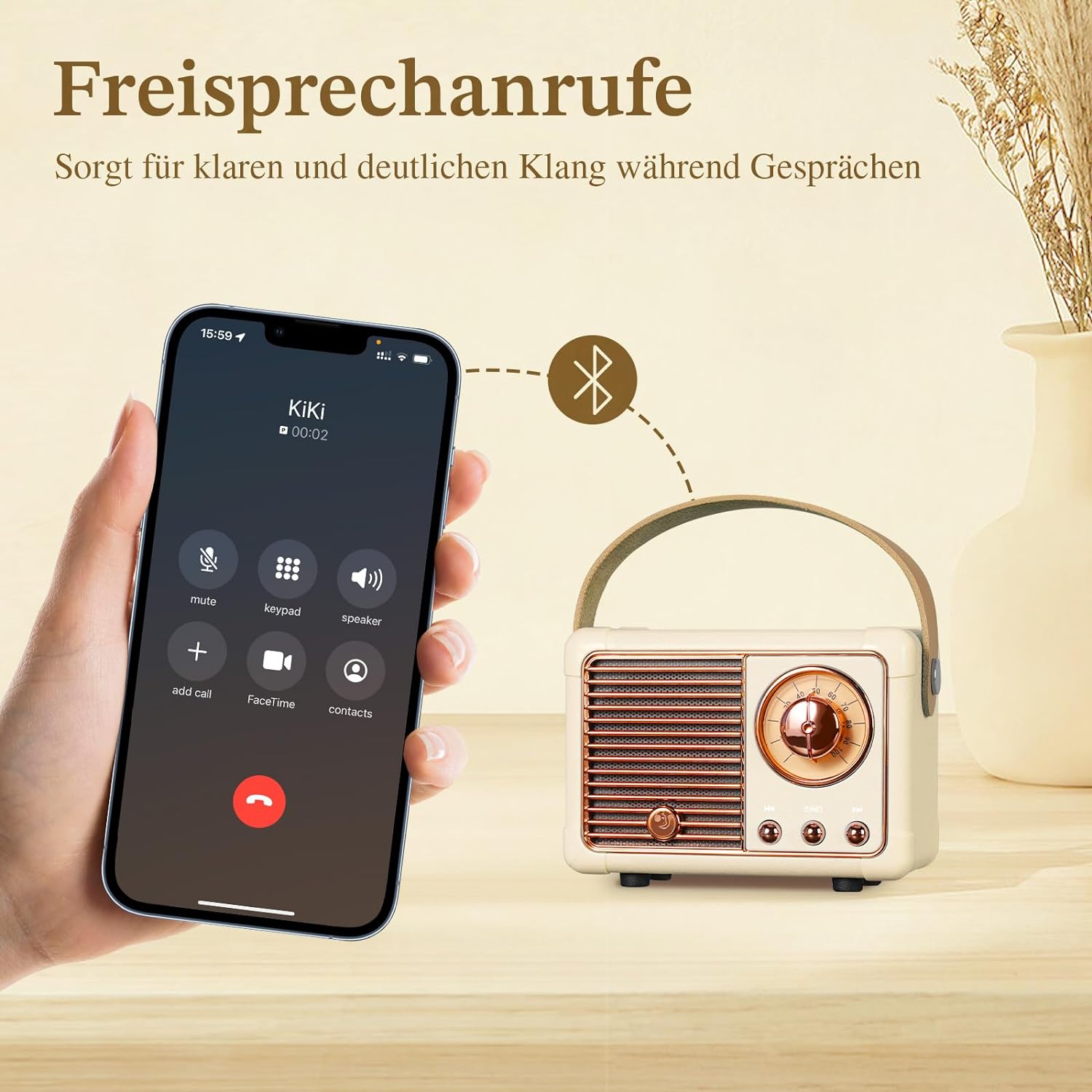 • ♫【Retro-Bluetooth-Lautsprecher】Tauchen Sie ein in eine Welt der Nostalgie und zeitlosen Eleganz mit unserem vintage Radio mit Bluetooth Lautsprecher. Sein retrohaftes und zartes Erscheinungsbild erweckt Erinnerungen an vergangene Zeiten und