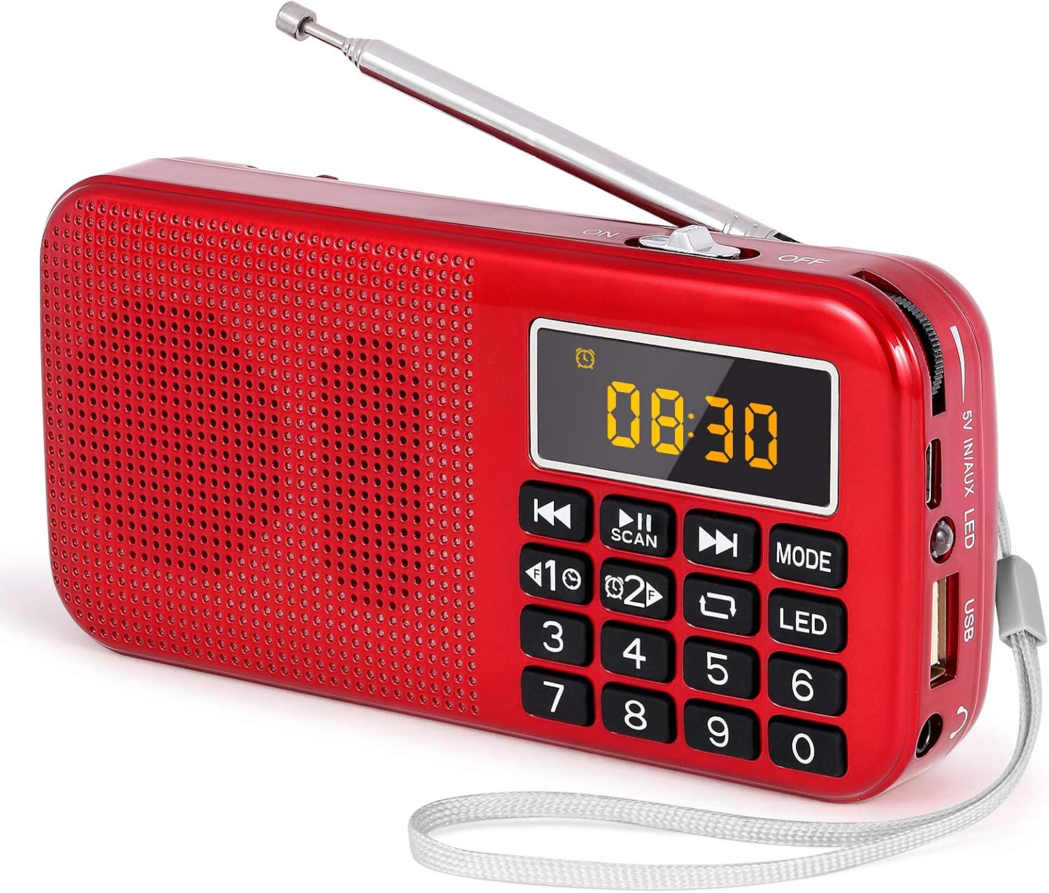 • Tragbares und kompaktes Design: Dies ist ein tragbare radios (L135 x H66 x T28mm), welches nur 192g wiegt. Es ist mit einem abnehmbaren silbernen Riemen ausgestattet, der das Tragen erleichtert, und kann überall aufgehängt werden. Geeignet für den