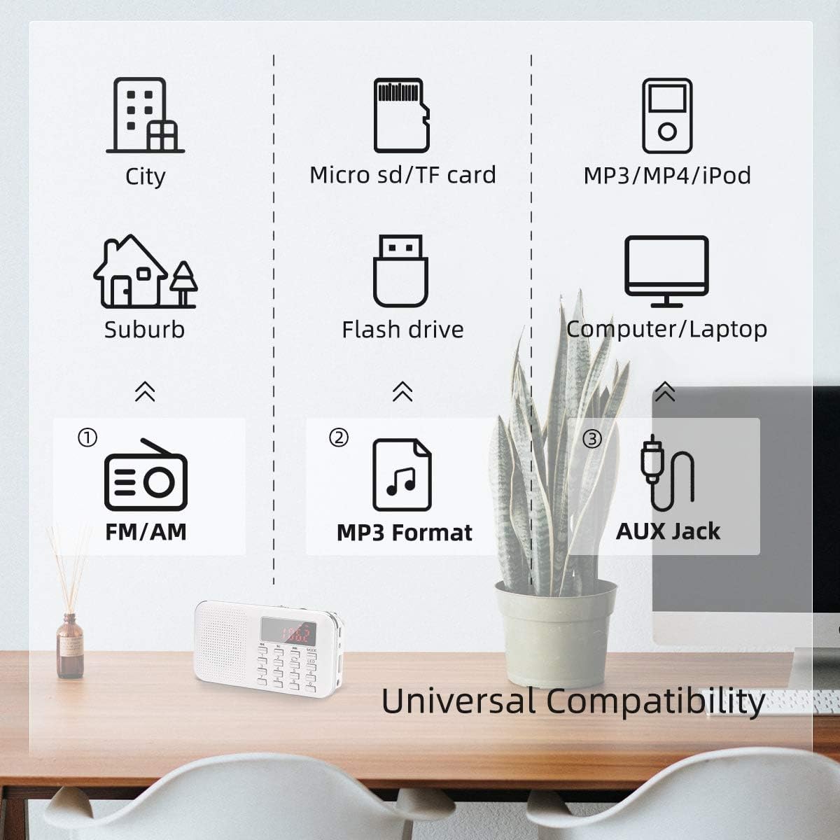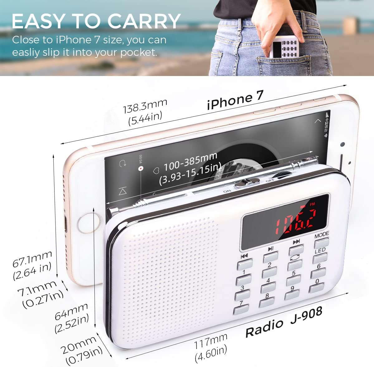 - ♥PERFEKTES MUSIKERLEBNIS: 1) Unterstützt TF-Karten/Flash Laufwerke. 2) 3W Magnetlautsprecher, das kleine Radio unterstützt Kopfhörer (3,5 mm).