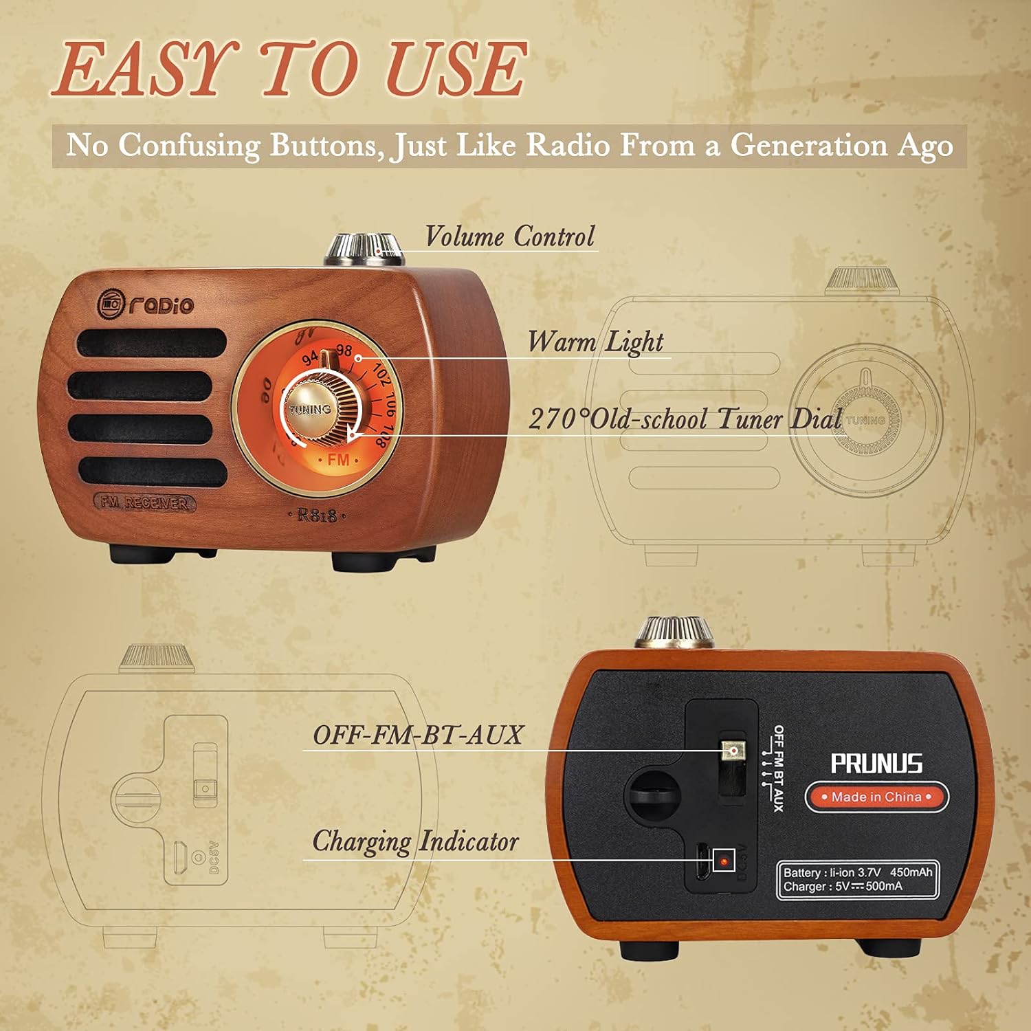 - ✿Exzellenter Empfang: was ist enthalten: 1) Dieses retro radio bluetooth mit leistungsstarker DSP-Chip. Ermöglicht eine genauere Signalerfassung. 2) Kreisförmiges Tuning-Fenster mit einem super 270° Tuning-Bereich, kann die Genauigkeit für den