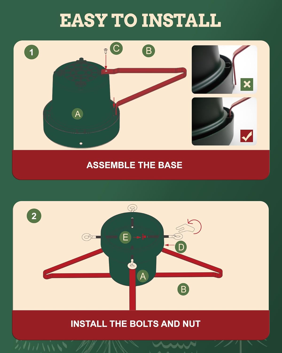 • Abnehmbares Design – Der Christbaumständer mit Wasserbehälter lässt sich mühelos installieren und kann dank des Benutzerhandbuchs oder eines Installationsvideos einfach zusammengebaut werden. Das abnehmbare Design sorgt dafür, dass Sie sich nach