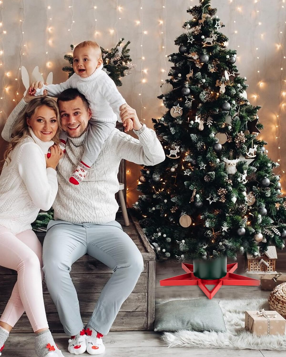 - Innovatives Design – Das Design des Christbaumständers mit seiner sternförmigen Basis bricht mit der Tradition und ist von der klassischen Weihnachtsbaumspitze inspiriert. Es verleiht der Weihnachtsdekoration der Familie eine kreative Ästhetik. Die