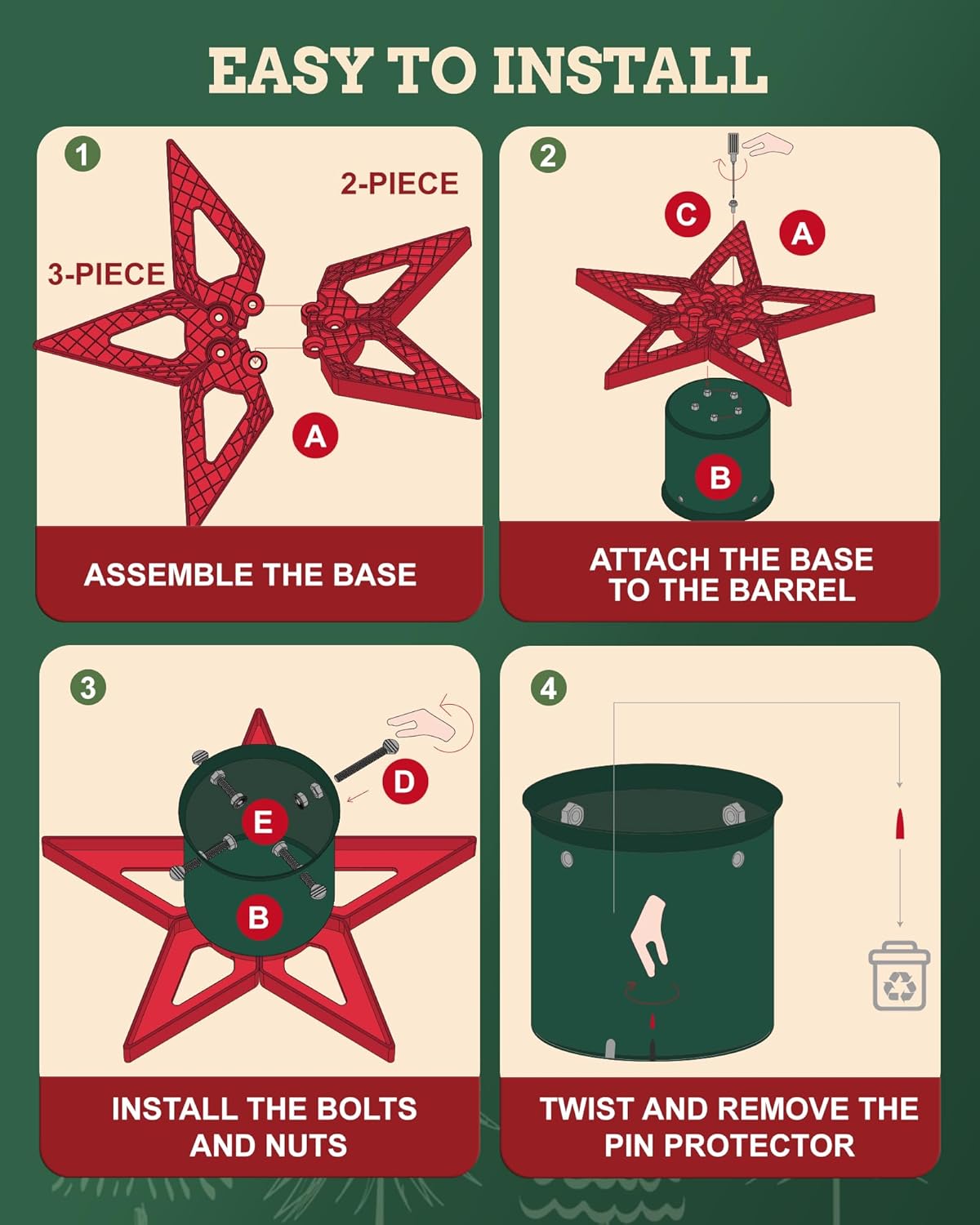 - Abnehmbares Design - Der Weihnachtsbaumständer mit Wassertank lässt sich mühelos installieren und kann anhand des Benutzerhandbuchs oder eines Installationsvideos leicht zusammengebaut werden. Das abnehmbare Design sorgt dafür, dass Sie sich nach den